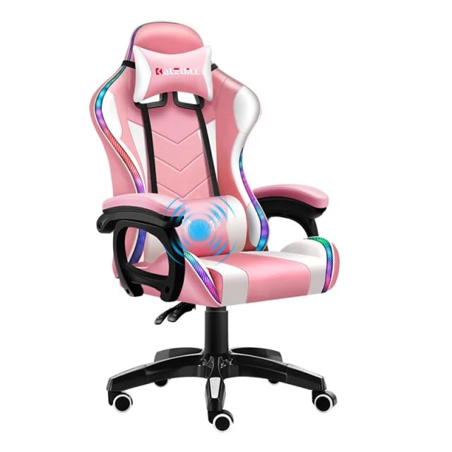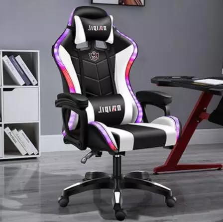 Experience the perfect blend of comfort and style with this ergonomic gaming chair. Designed for long hours of gaming or work, it features a built-in massage function with multiple vibration points to keep you relaxed. The customizable LED lights add a vibrant touch to your setup. With a high-back design, lumbar and neck support cushions, and reclining up to 150 degrees, it promotes healthy posture. Made from premium PU leather and a sturdy metal frame, this chair is built to last and supports up to 300 lbs.