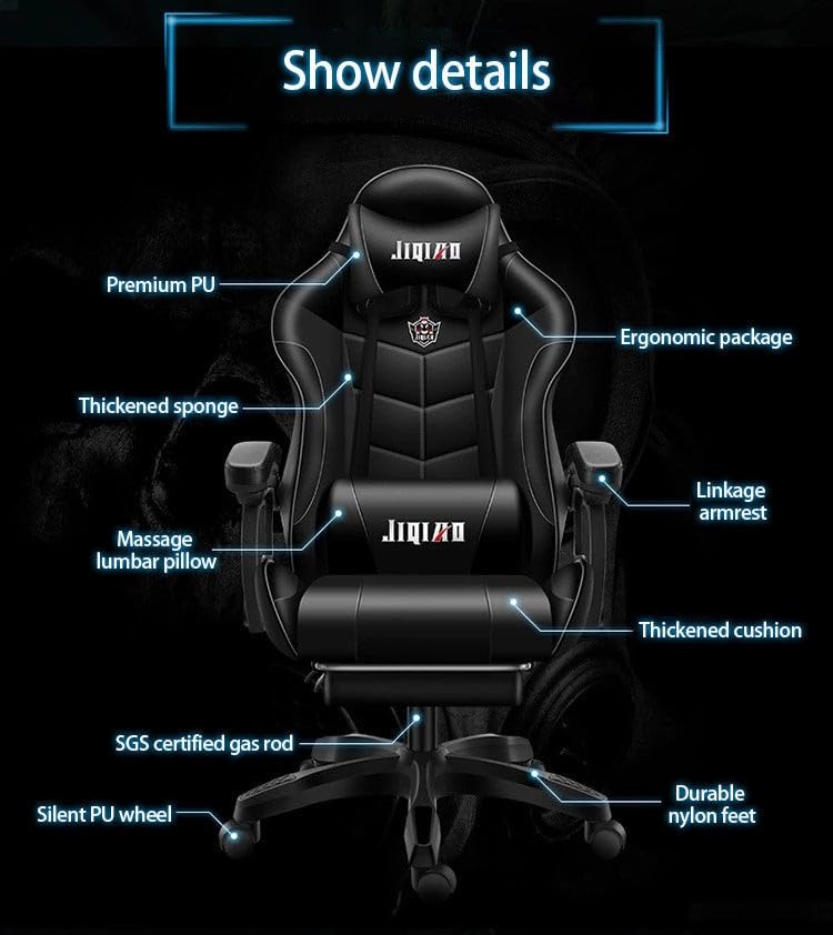 STURDY CONSTRUCTION & ECO FRIENDLY MATERIAL: Alloy frame covered in quality hand sewing PU leather and 5 inches high density foam for comfy. Upgraded LANT gas cylinder and mechanism ensure the useage of the chair.