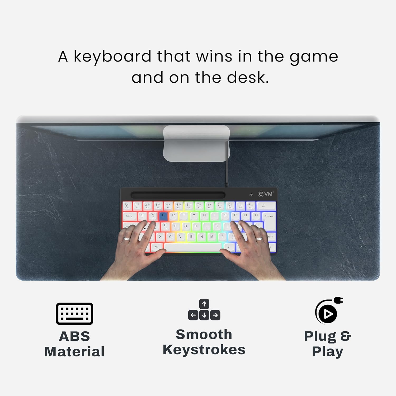 EVM EnHype Wired Keyboard 62 Keys, Rainbow LED Backlit, 19 Anti-Ghosting Keys, Mobile Stand, Smooth Keystrokes, Compact Layout, Plug & Play, for PC, Laptop, Gaming Setup – 1-Warranty (EVM-WLK-612)