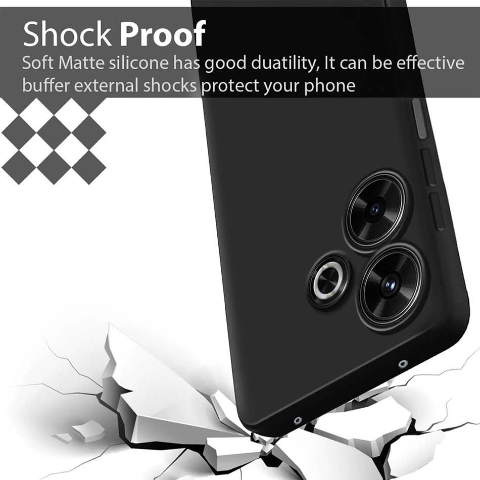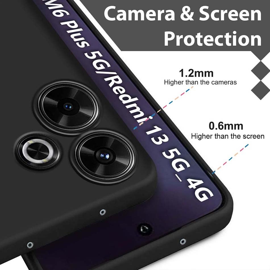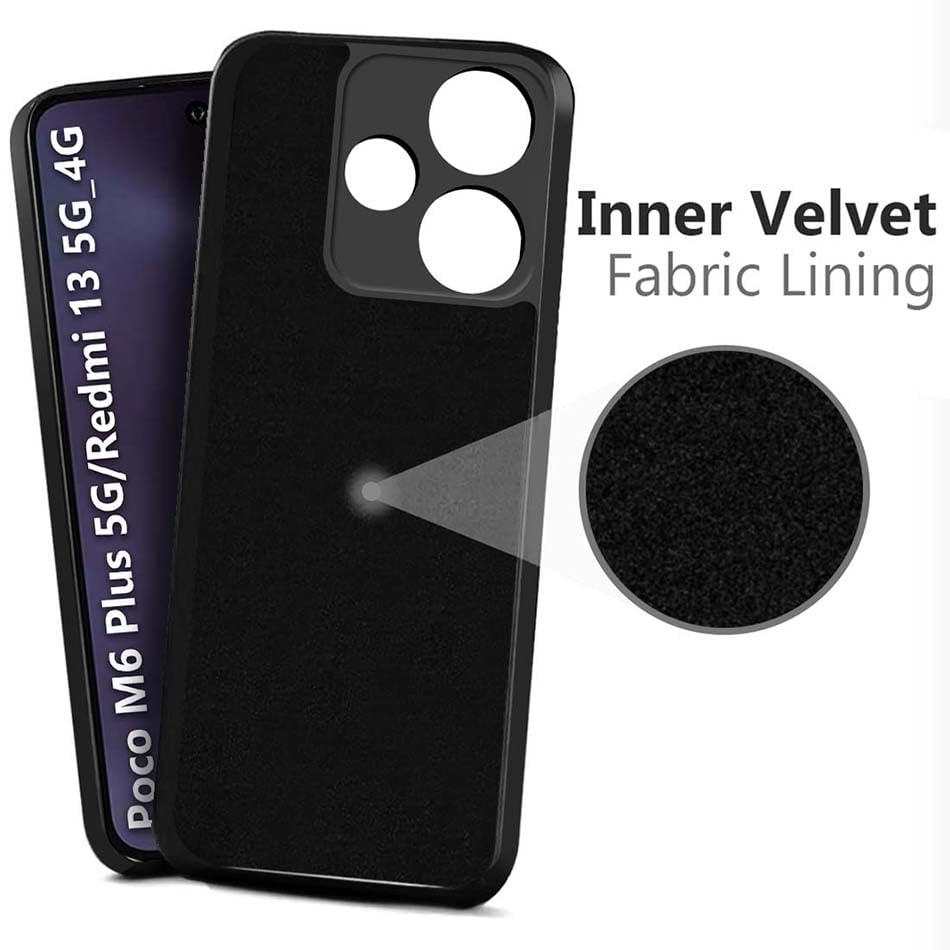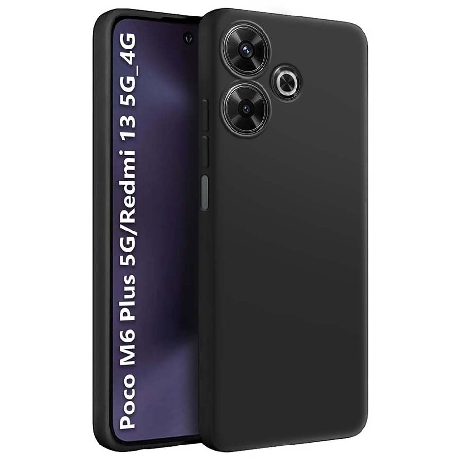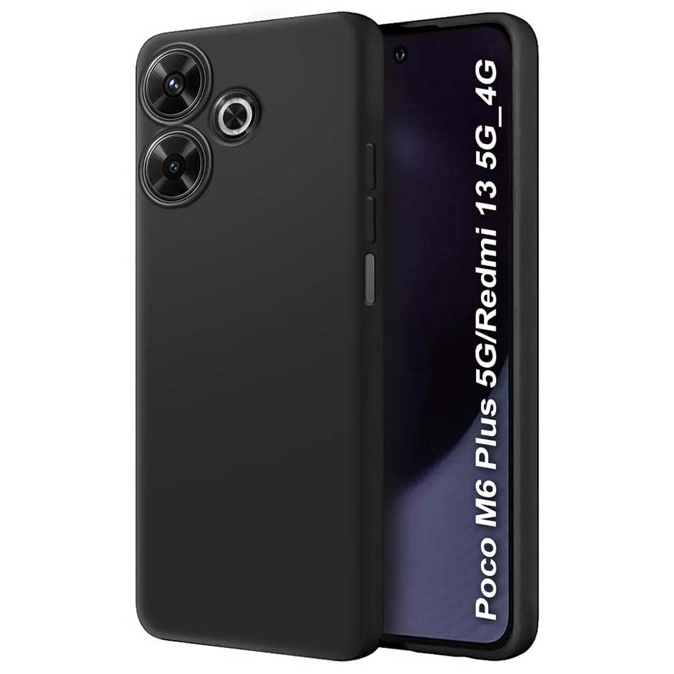 Fashionury Back Cover for Poco M6 Plus 5G / Redmi 13 5G / 4G | Camera Bump Protection | Matte Soft Silicon Flexible | All Side Shock Proof Rubberised Back Case (Black)
