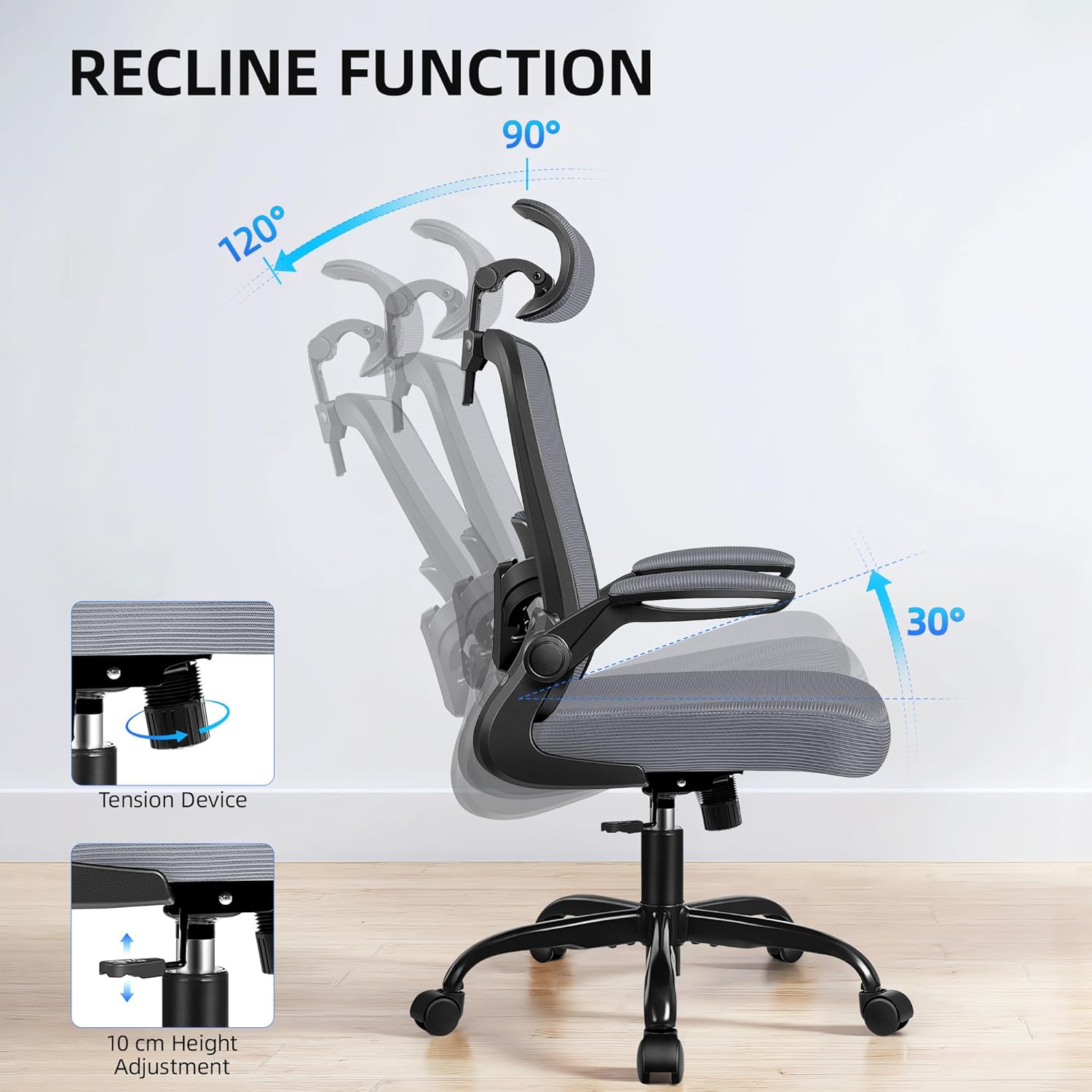 ๐ฎ๐ฅ๐ฅ๐ฒ ๐๐๐ฃ๐ฎ๐ฌ๐ญ๐๐๐ฅ๐ ๐๐จ๐ซ ๐๐ฏ๐๐ซ๐ฒ ๐๐ฌ๐๐ซ๏ผThis adjustable desk chair adapts to you with a 3.9-inch height lift, 30ยฐ tilting headrest, 90โ120ยฐ recline range, and 90ยฐ flip-up arms. The upgraded headrest adjusts both height and angle to support users of different heightsโperfect for computer chair and gaming chair use. The 360ยฐ swivel chair base allows smooth, effortless movement across your workspace