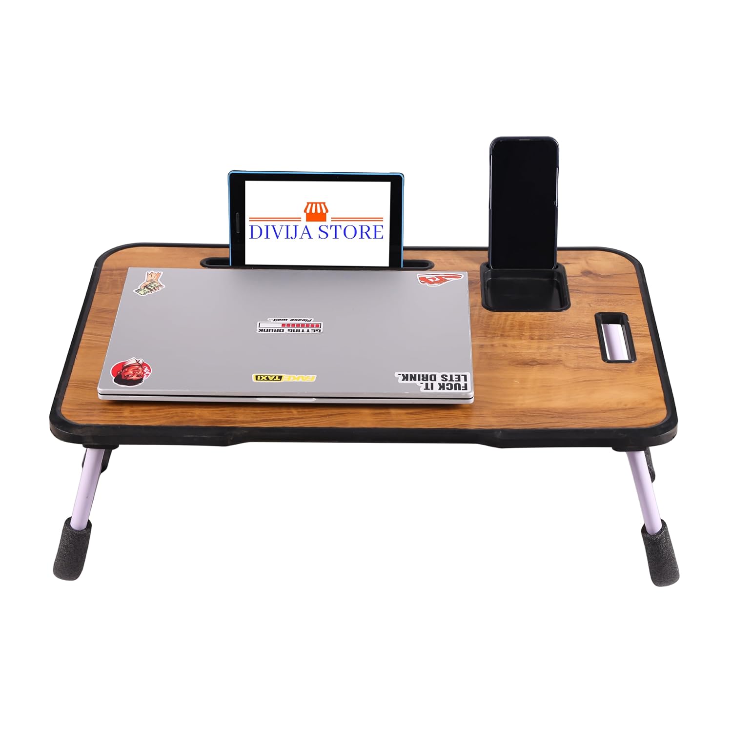 Foldable Wooden Laptop Table | Adjustable Multipurpose Study Table with Drawer, Mobile/Tablet Stand | Portable Writing Desk for Office, Home, School & Work from Home – New Wood