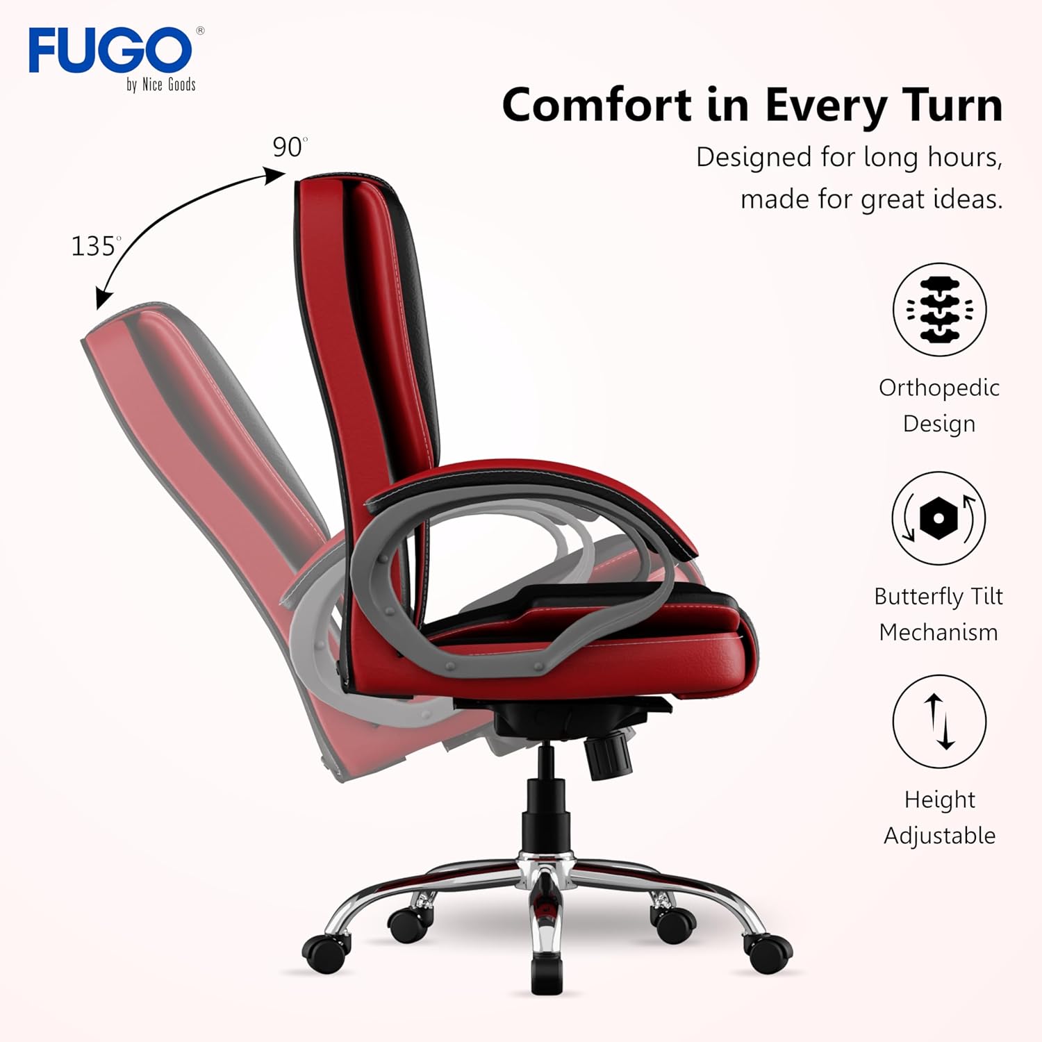 FUGO FG12 Ergonomic Office Chair with Adjustable Height,Cushioned Back & Seat,Tilting Mechanism,Heavy-Duty Metal Base,Dual Nylon Casters–Ideal for Work,Gaming, Study,3Year Warranty (Black & Red)