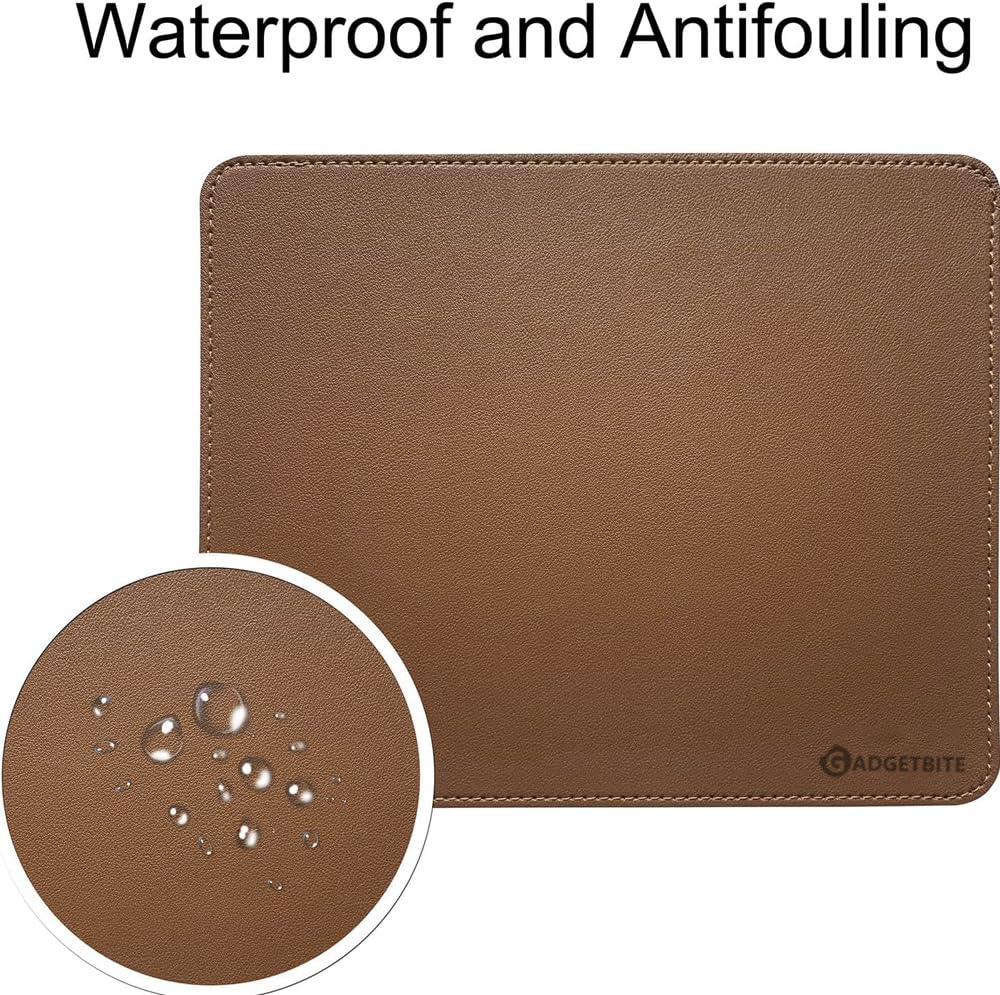 GadgetBite Mouse Pad Large Premium Vegan Leather Surface Desktop Mat Laptop Computer Mat for Home Office Smooth Surface for Comfortable Typing Writing and Gaming Pad (25 cm x 20 cm x 0.1 cm) – Brown