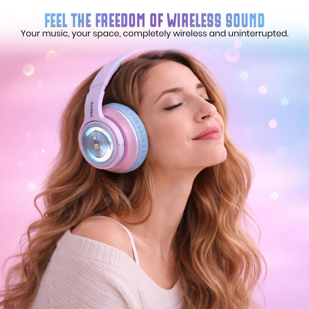 GameSir Astro Junior Wireless Headphones with 40mm Drivers, Deep Bass Stereo Sound, Bluetooth 5.3, Over-Ear Noise Isolation Headset with LED Light, Built-in Mic for PC, Mobile & Laptop (Blue)