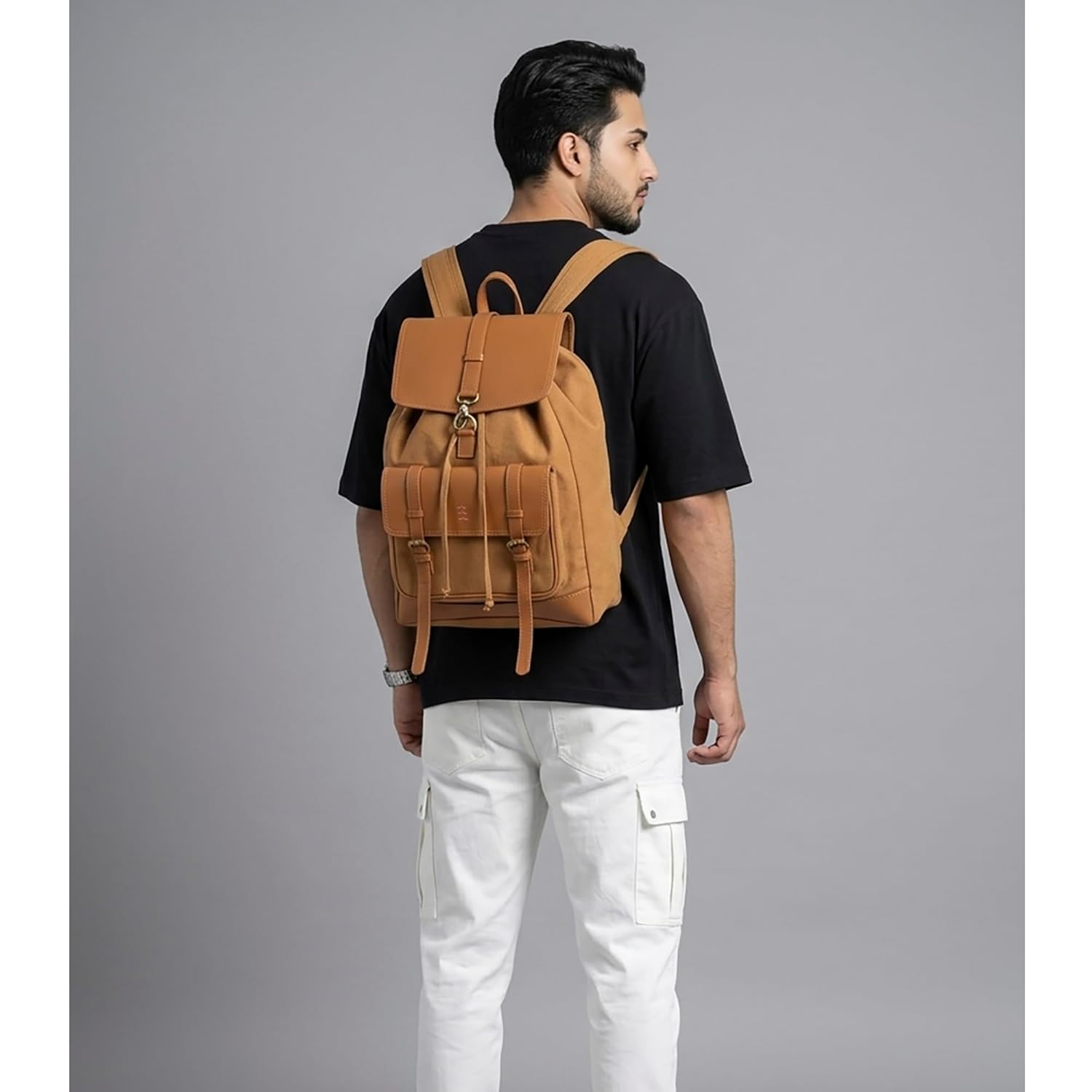 The Gilmore Oak Jimmy Backpack combines vintage style with everyday practicality. Made from premium canvas and faux leather, this backpack offers durability, comfort, and timeless design. Its spacious main compartment with drawstring closure keeps your belongings secure, while the flap lock with hook and D-ring adds extra protection. Multiple pockets help you stay organized during office, college, or travel. With adjustable shoulder straps and a sturdy top handle, this backpack is comfortable for daily use. Whether you need a canvas backpack for college, an office laptop bag, or a stylish travel backpack, Jimmy is designed to meet your needs. Dimensions: 32 cm (L) × 22 cm (W) × 40 cm (H) Material: Premium Canvas with Faux Leather Warranty: 6 Months Against Manufacturing Defects