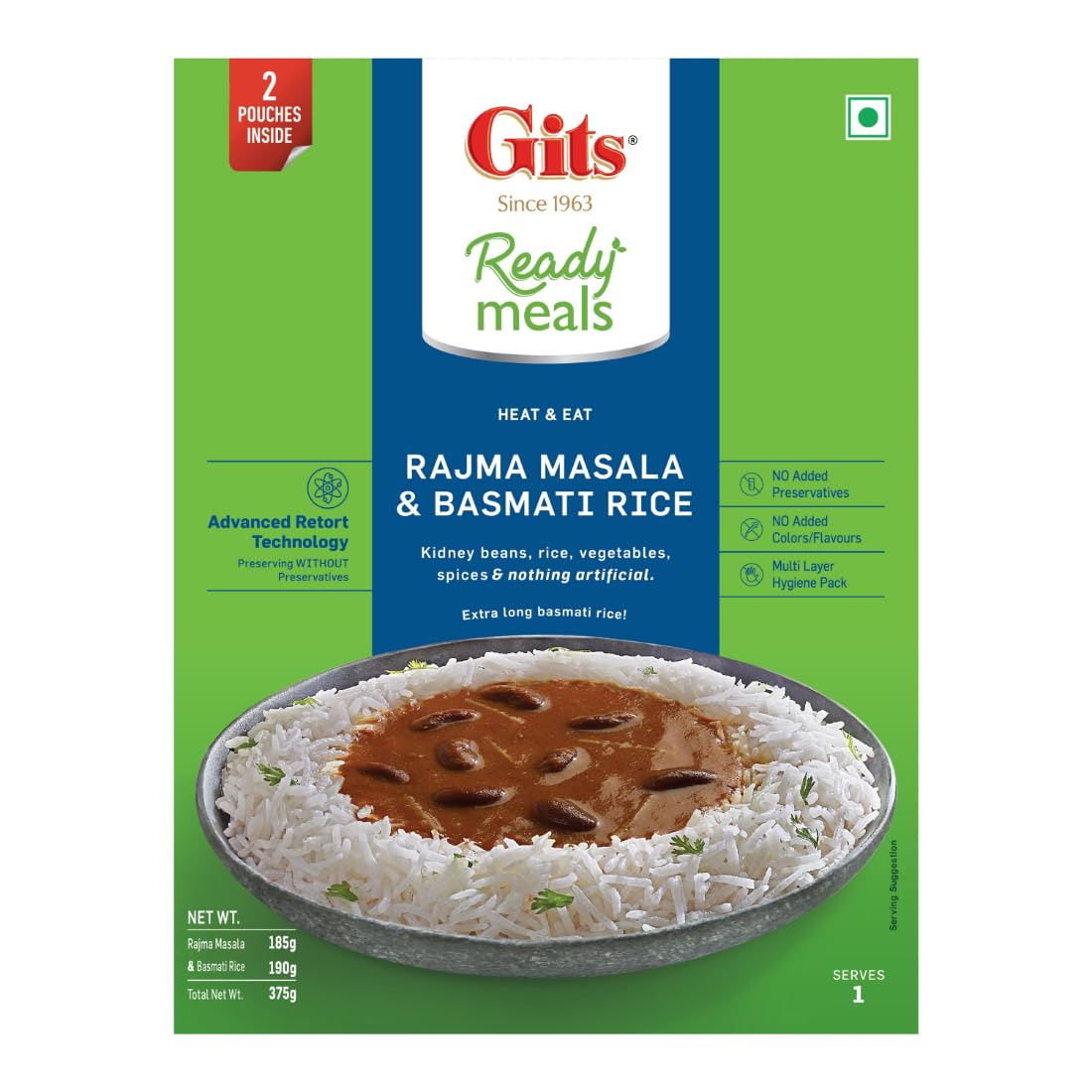 Gits Ready to Eat Basmati Rice & Rajma Masala Combo Meal, Pure Veg, Heat and Eat, 375g
