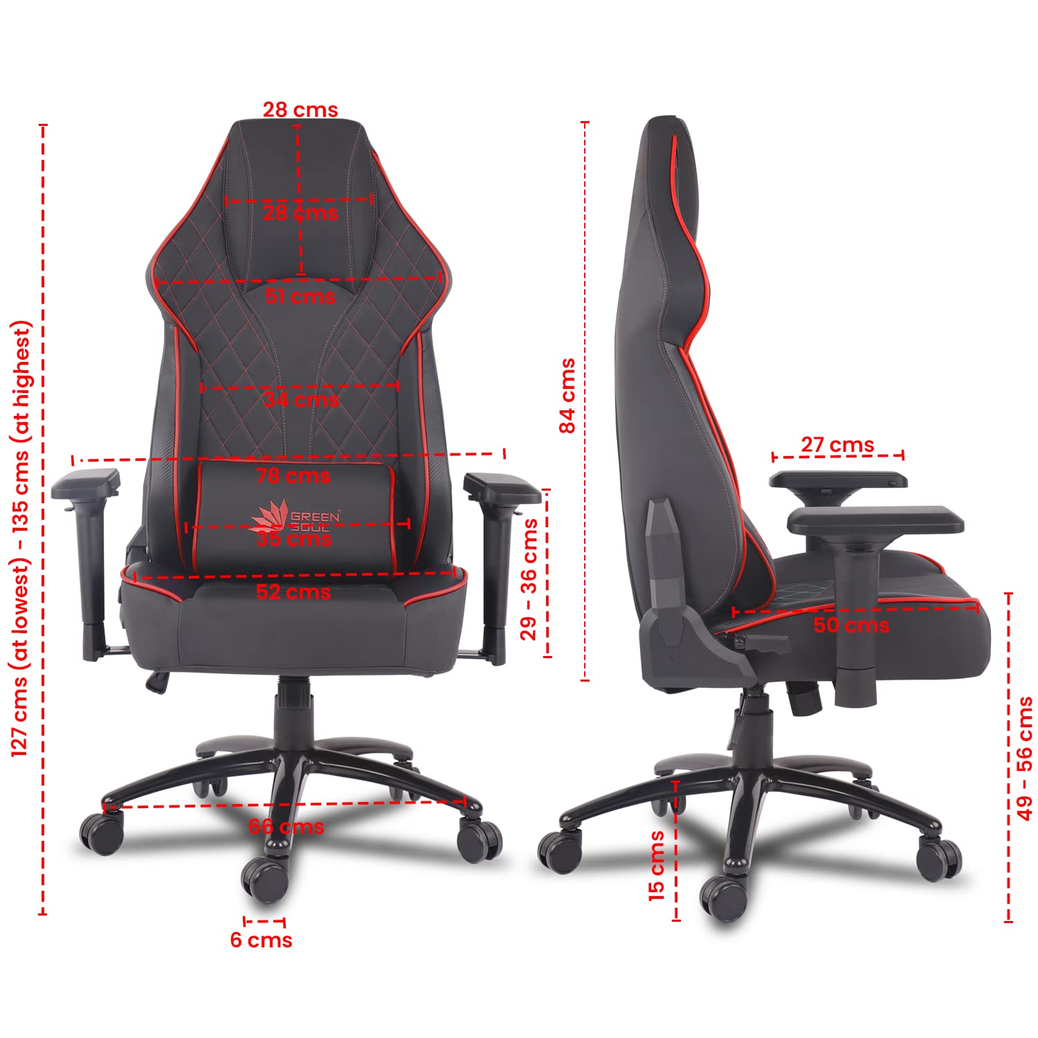 Green Soul Glance Multi-Functional Ergonomic Gaming Chair, Premium Leatherette Chair with Best in Class Comfort, Adjustable Neck & Lumbar Pillow, 4D Adjustable Armrests (Black & Red)
