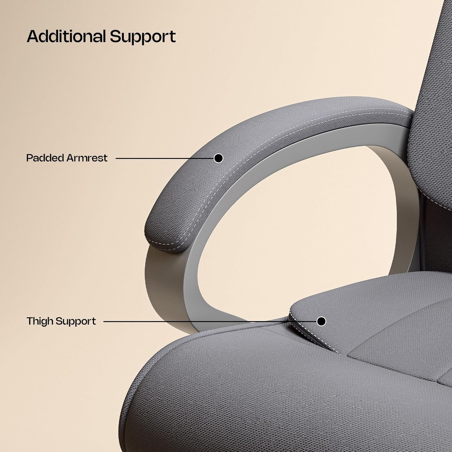 𝗖𝗢𝗡𝗧𝗢𝗨𝗥𝗘𝗗 𝗖𝗢𝗠𝗙𝗢𝗥𝗧: Featuring contoured seat cushioning with pressure point technology, this desk office chair helps reduce pain and pressure when sitting for long hours. The 2-inch stationary crevice and Huantiao acupressure points targeted through cushioned seating provides relief for hips and lower lumbar areas, supporting all-day comfort during work or relaxation.