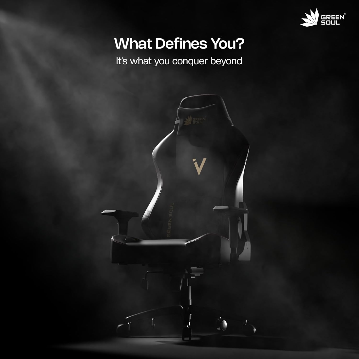 Green Soul Vision Multi-Functional Ergonomic Gaming Chair, Premium Leatherette Chair with Adjustable Neck & Lumbar Pillow, 4D Adjustable Armrests & Heavy Duty Metal Base (Black) Installation Provided