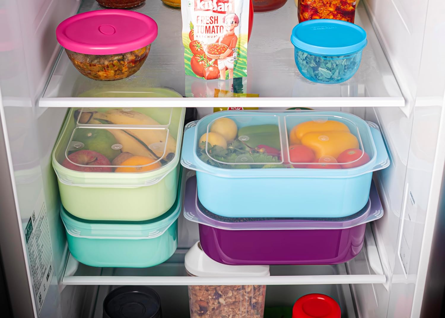 Refrigerator / Freezer Safe : We Can Store Food Items, Baby Foods, Spices, Cereals, Dry Spices, Grams, Vegetables & Fruits, Snacks, Salt, Cookies, Chocolates, Sugar, Dry fruits, Flour etc..