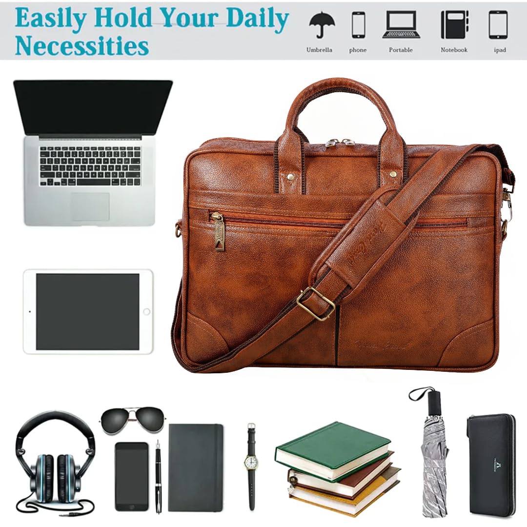 Hard Craft Messenger Office Laptop Bag for Men PU Leather Business Executive Briefcase Laptopbags Corporate Official Sling Side Shoulder File HandBag for Man Supports Laptop Upto 15.6 inches