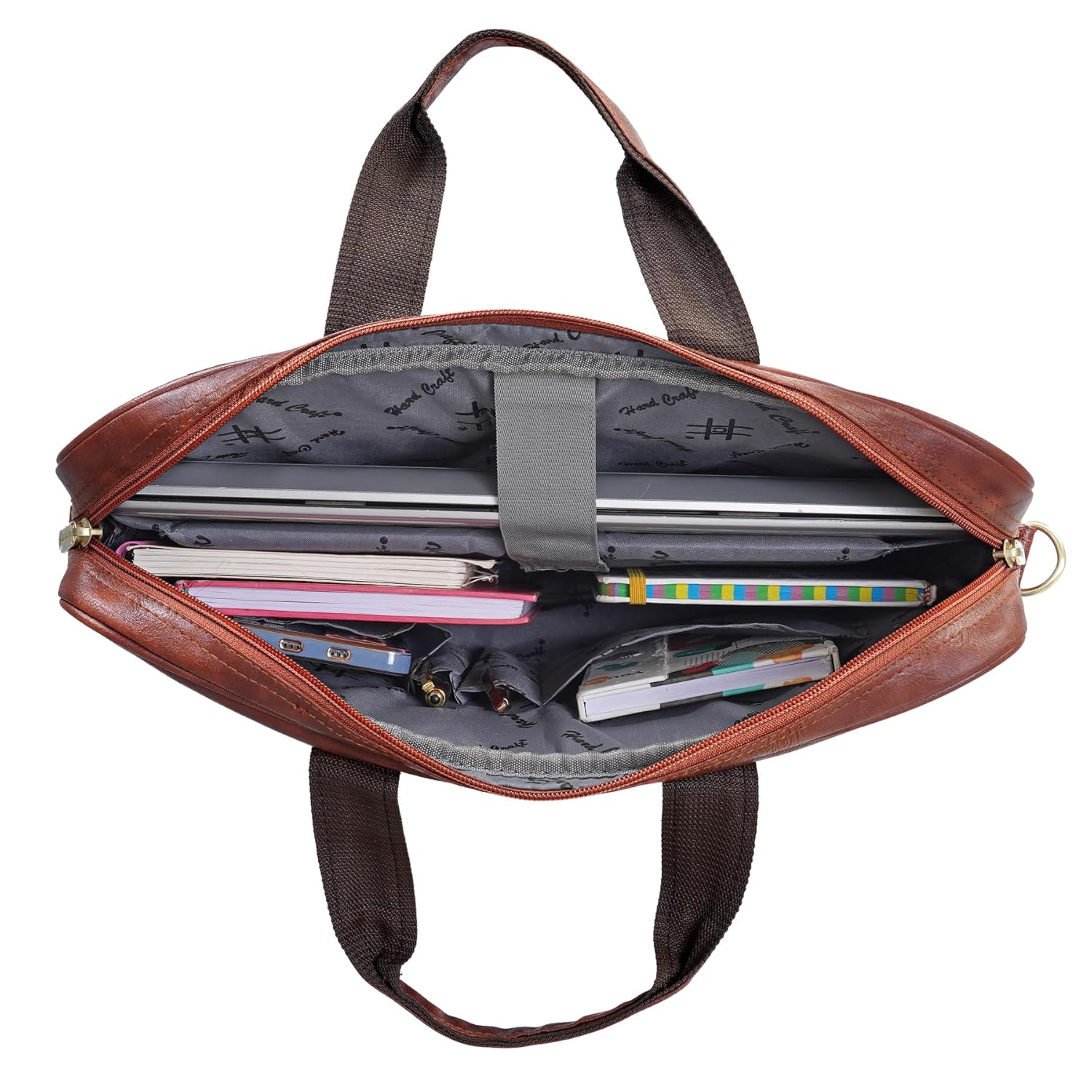 Hard Craft PU Leather Formal Office Sleeve Bag For 15.6 inch Laptop MacBook INoteBook Notepad Tablets Crossbody Briefcase Messenger Bag for Men Women With Detachable Shoulder Straps