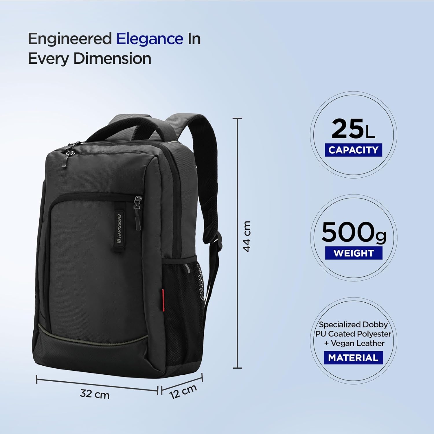 HARISSONS Python 15.6 Inch Semi-Formal Laptop Backpack | Stylish Vegan Leather Detailing | Lightweight 25L Trolley Sleeve Bag for Men & Women | Compact Office & College Backpack
