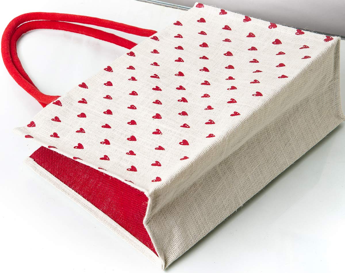 H&B Jute Shopping Bag – Jute Bags for grocery shopping | Trendy Bag | Shoulder Bag | Grocery Shopping Bag Large | Shopper Tote Bag – Heart (Combo of 2 – Red)