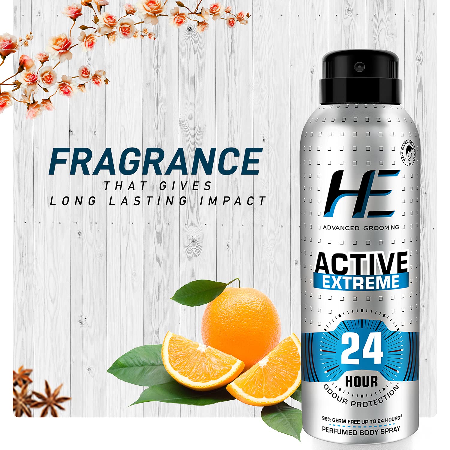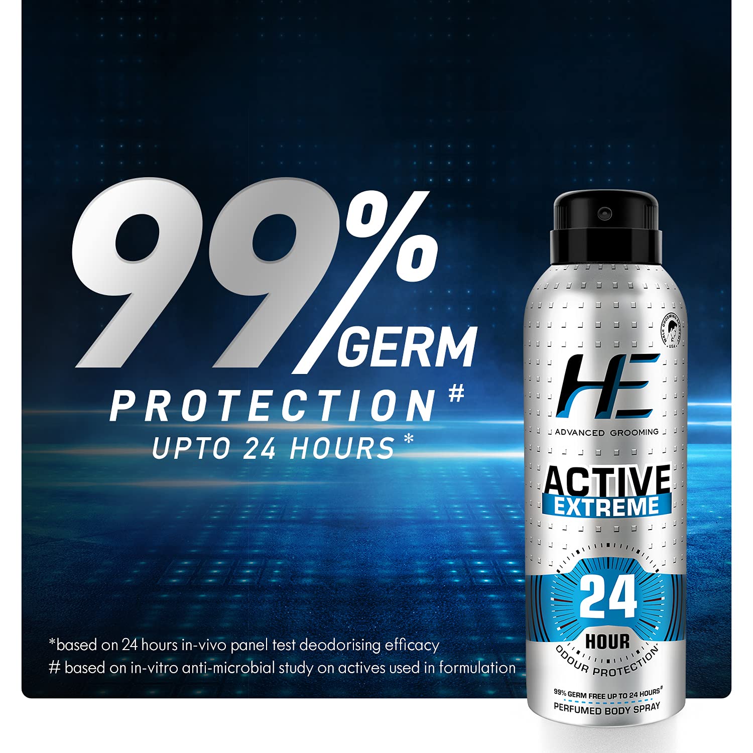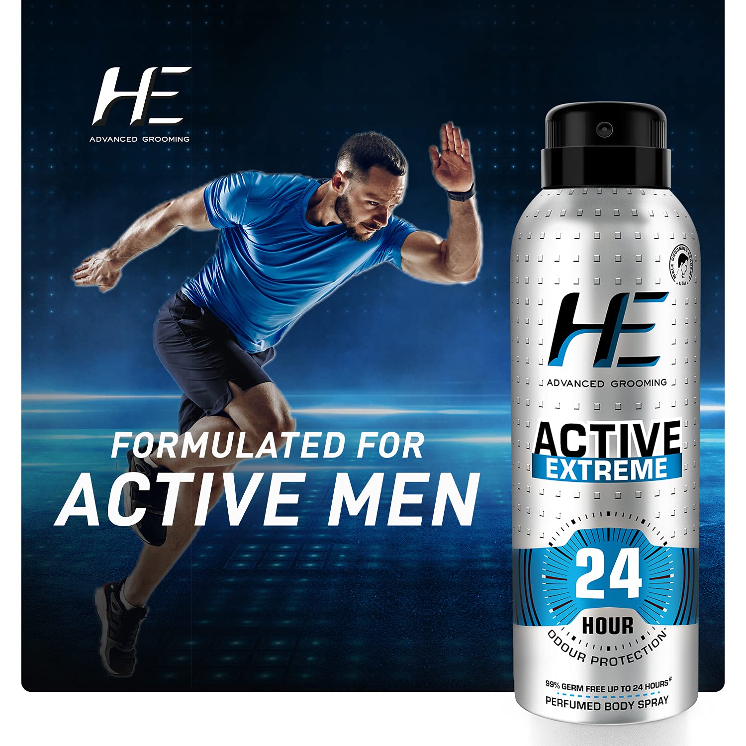HE Active Extreme Perfumed Body Spray 150ml for Today’s Active Men, 24 Hour Odor Protection* 99% Germ Free up to 24 hours
