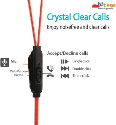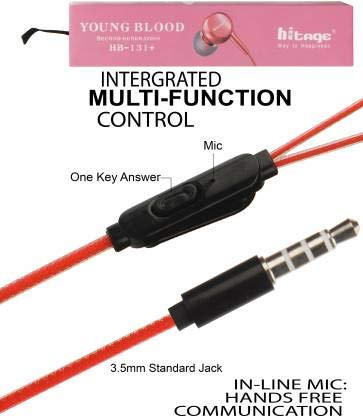 Hitage Earphones HB-131+ Headphones Earplugs Headset High Definition Sound Deep Extra Bass Wired Earphone with in-line Mic Wide Compatibility Tangle Free Cable (RED)