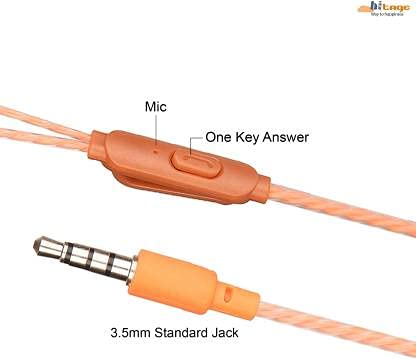 Hitage HPB-315 Earphones Headphones Earplugs Headset High Definition Sound Deep Extra Bass Wired Earphone with in-line Mic Wide Compatibility Tangle Free Cable (Orange)