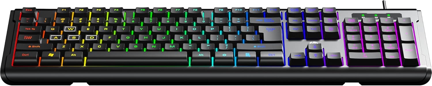 [LED backlit] : Cool multi-color backlight, night backlight effect, adjustable brightness. The multicolored backlit keyboard is easy to work on and looks impressive in the dark.