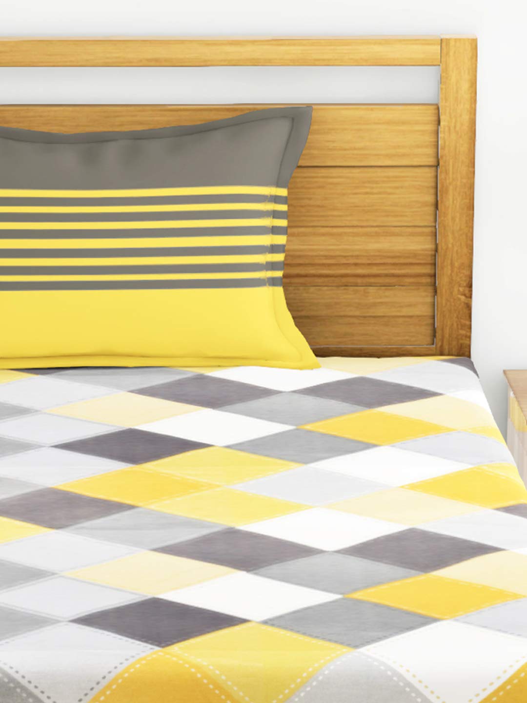Huesland by Ahmedabad Cotton 144 TC Cotton Single Bedsheet with 1 Pillow Cover – Yellow and Grey
