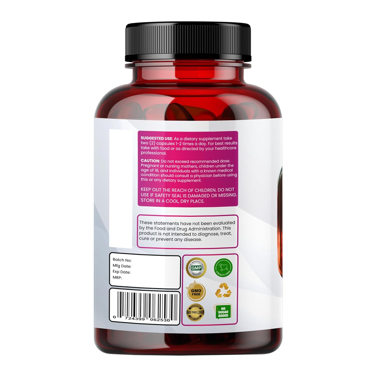 Suggested Use: As a dietary supplement take 1 capsule 1-2 times a day. For best result take with food or as directed by your healthcare professional