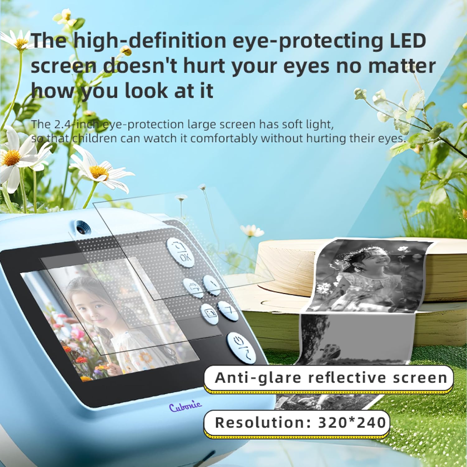 【Multifunctional Kids Digital Camera】This kids camera is both a digital camera and an instant print camera, allowing kids to capture color images, record 1080p HD videos, and print black and white photos. The mini camera has a 2.4-inch IPS screen, 8x digital zoom games, mp3 and other functions. This can meet children’s different needs and is a fun birthday/Christmas/daily gift for children aged 6+