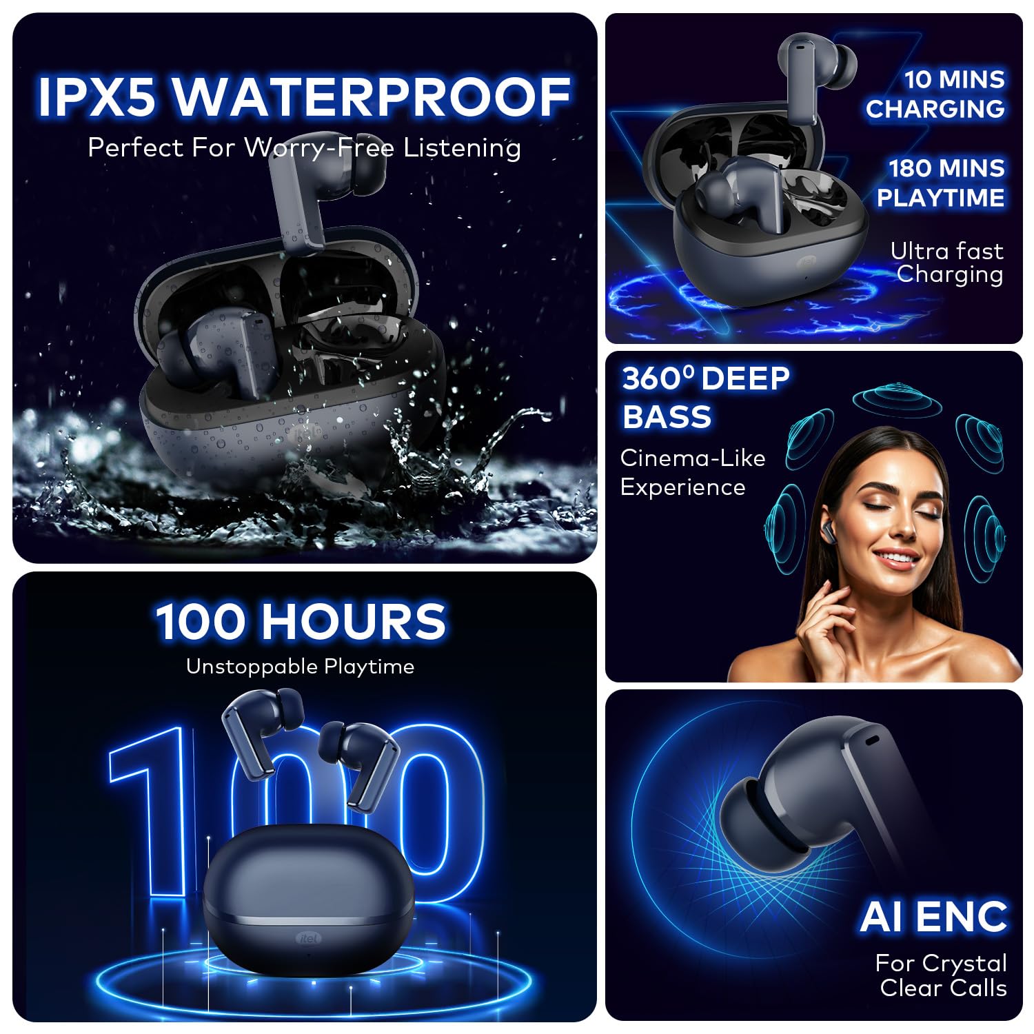 100-Hour Playtime: Stay powered through your longest playlists, podcasts, and calls with an astounding 100-hour total playtime. Whether you’re traveling, working, or just relaxing, enjoy uninterrupted audio that lasts for days.