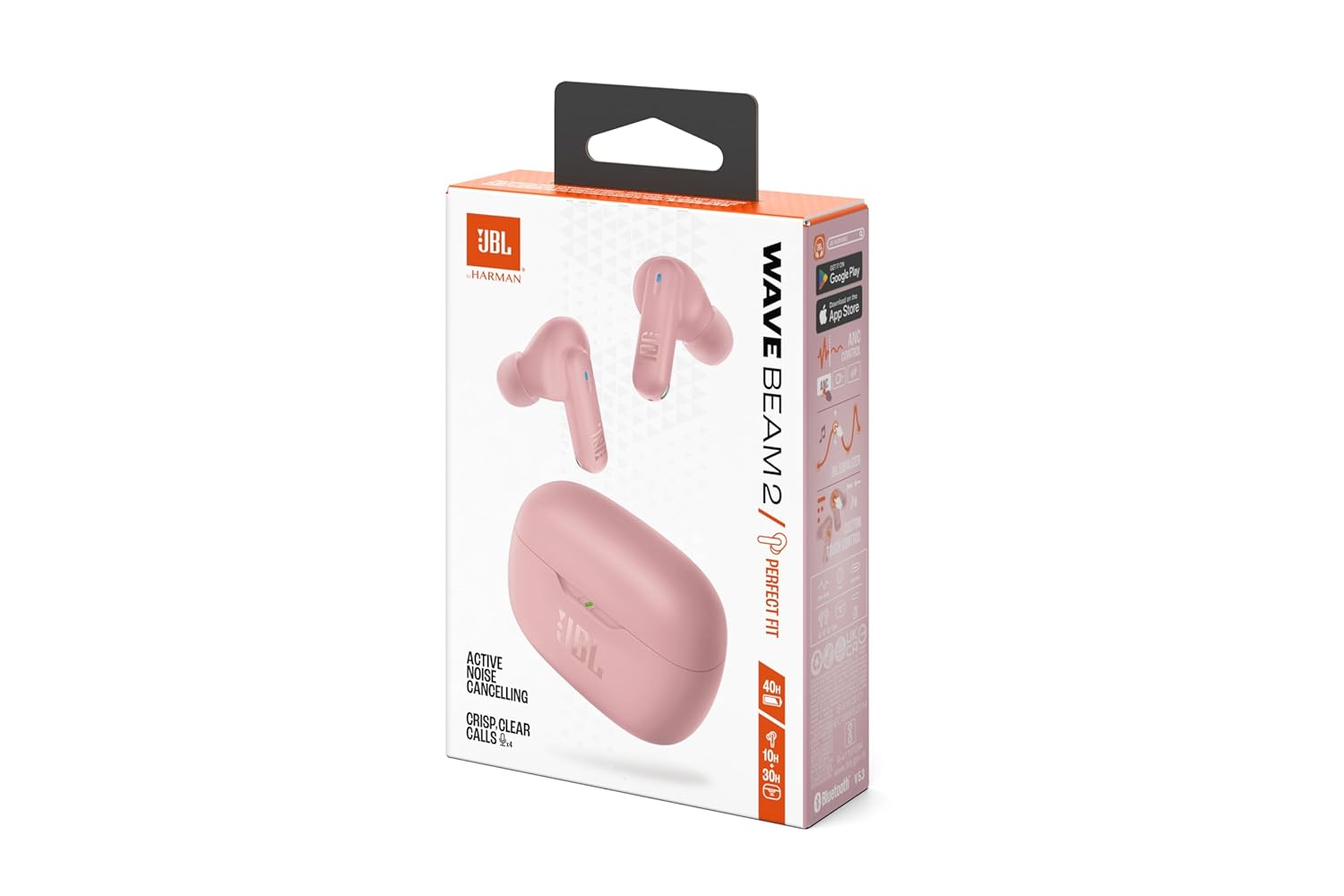 JBL Wave Beam 2 Ear Buds Wireless BluetoothV5.3, Active Noise Cancellation Earbuds,Multi Connect, App for Customized Extra Bass Eq, Relax Mode,Speed Charge, 40H Playback, Fast Pair,4 Mics,IP54(Pink)