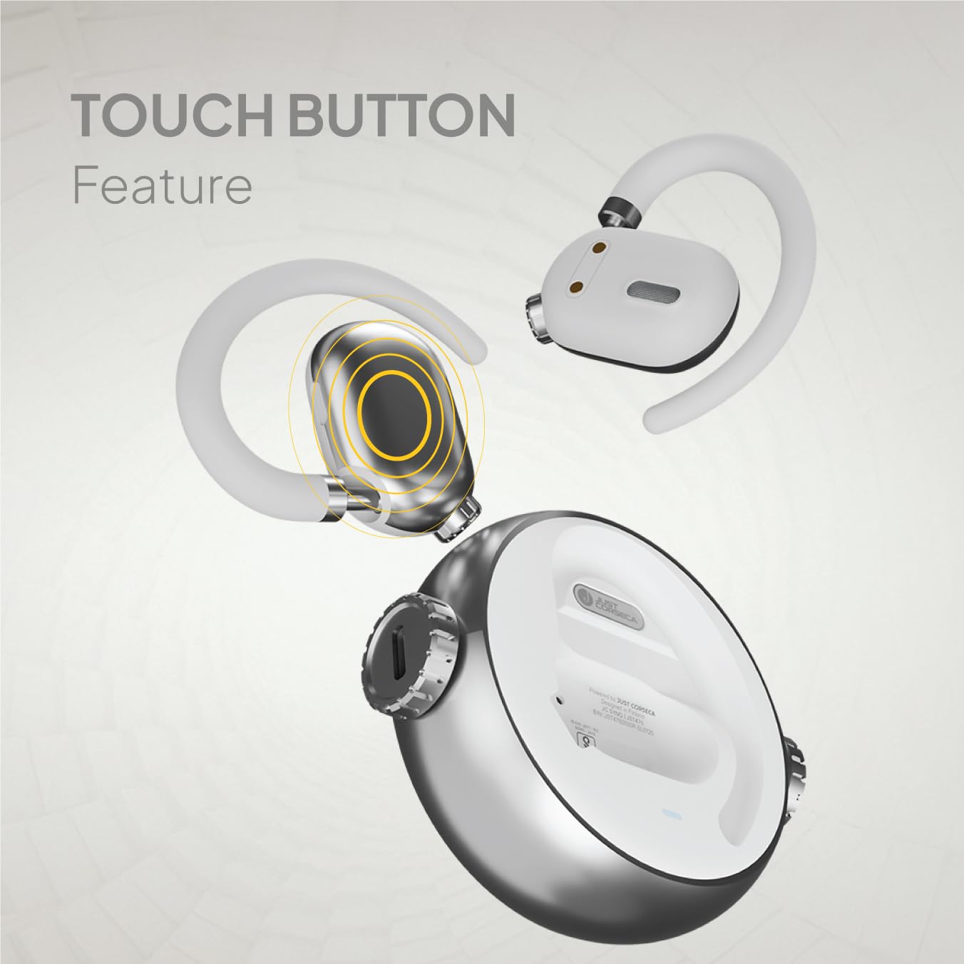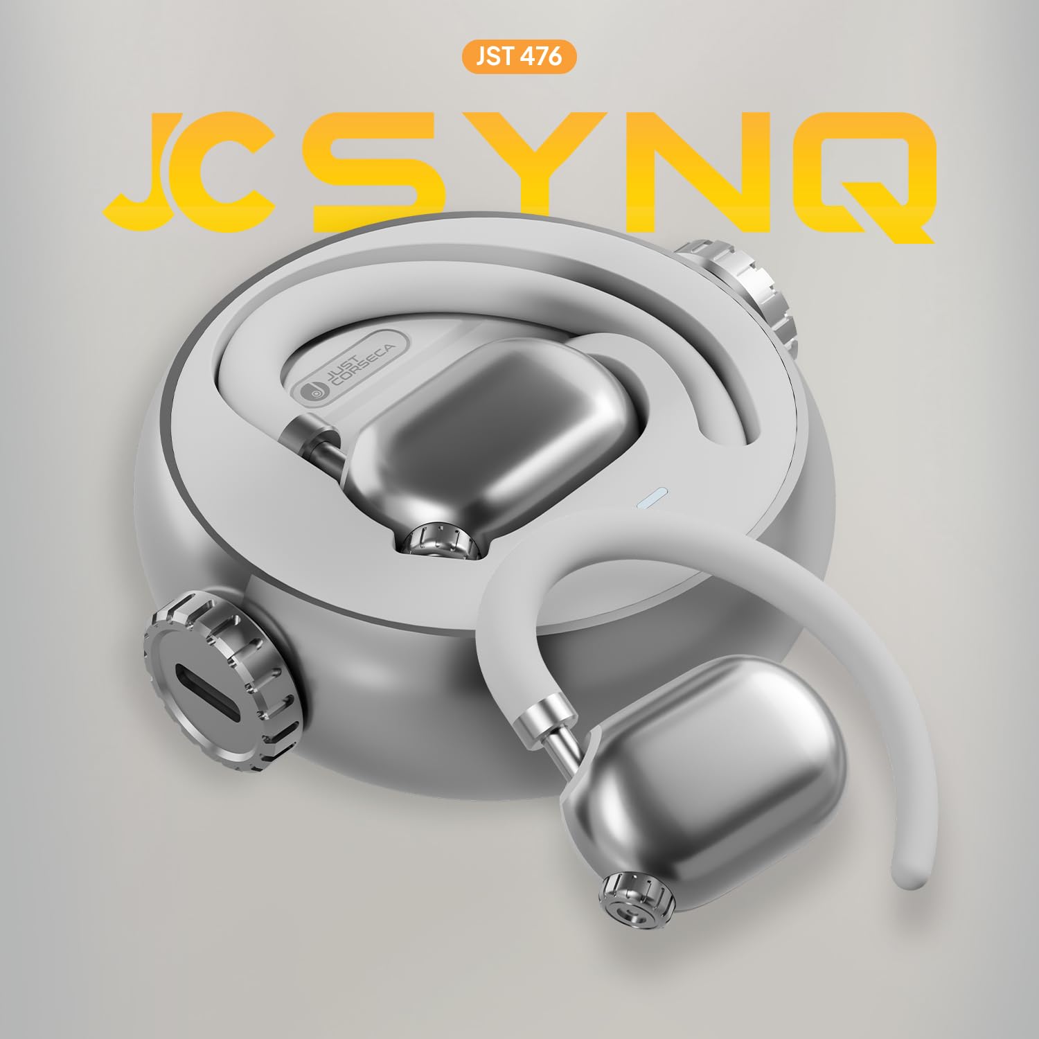 JC SYNQ Open Wearable Stereo with Mic | Bluetooth 5.4 | 9D Sound | Touch Controls | 50H Playtime | ENC Noise Reduction | Type-C & Lightning Charging | 400mAh Case (Silver)