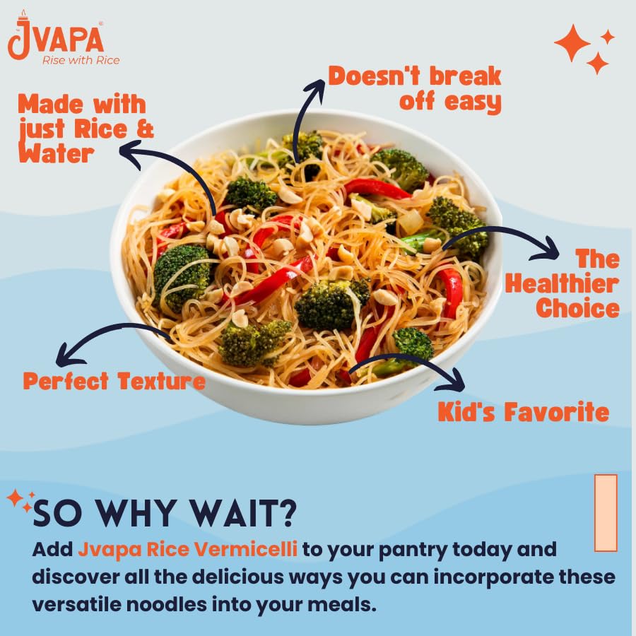 Jvapa Rice Vermicelli (Long Thin Noodles) |Naturally Gluten Free | Cholesterol Free | Naturally Fat Free | Made with 100% Rice -750 gm (250g x Pack of 3)