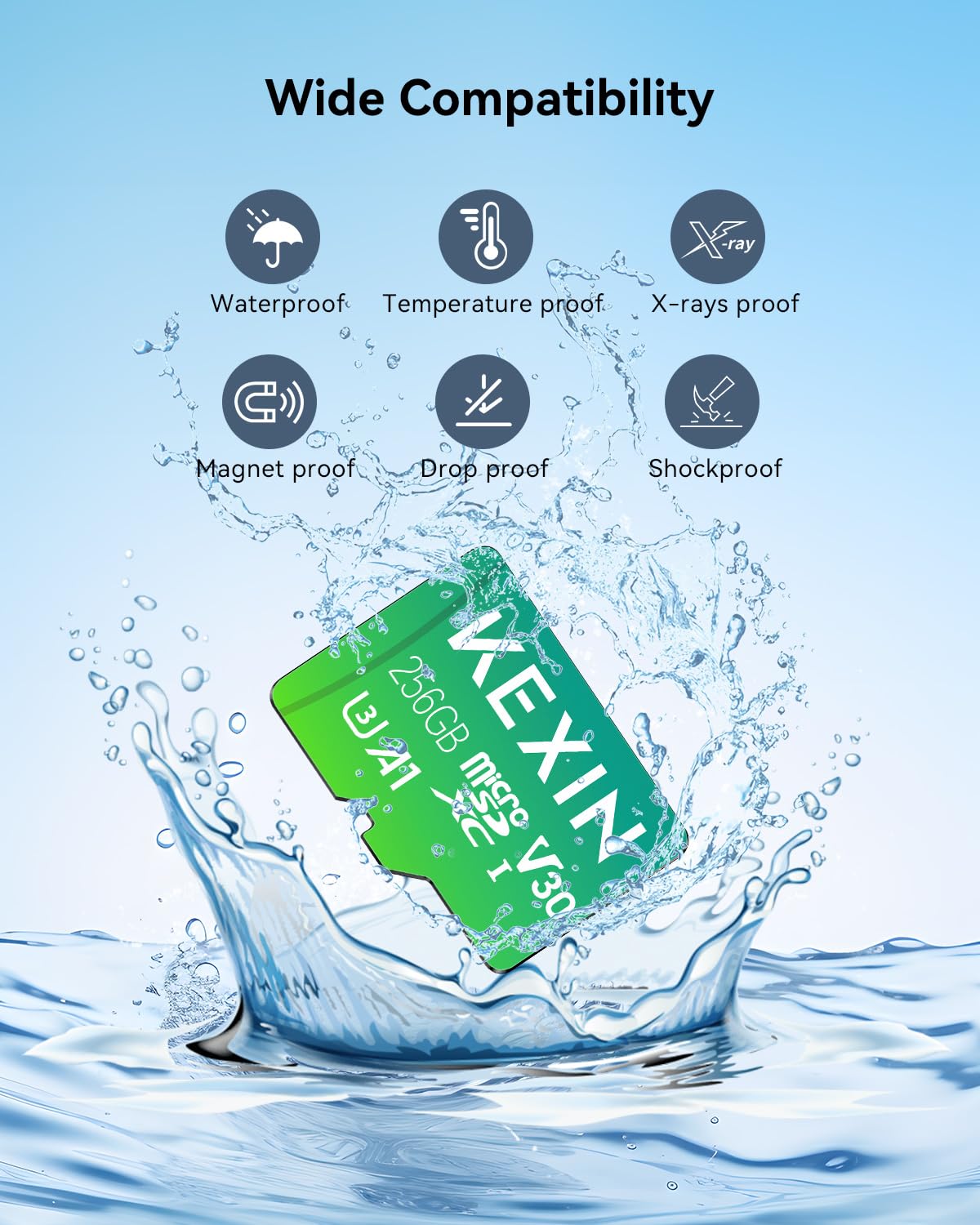 No need to worry, you can use the MicroSD card everywhere thanks to its temperature resistance, water resistance, shock resistance, X-rays resistance.