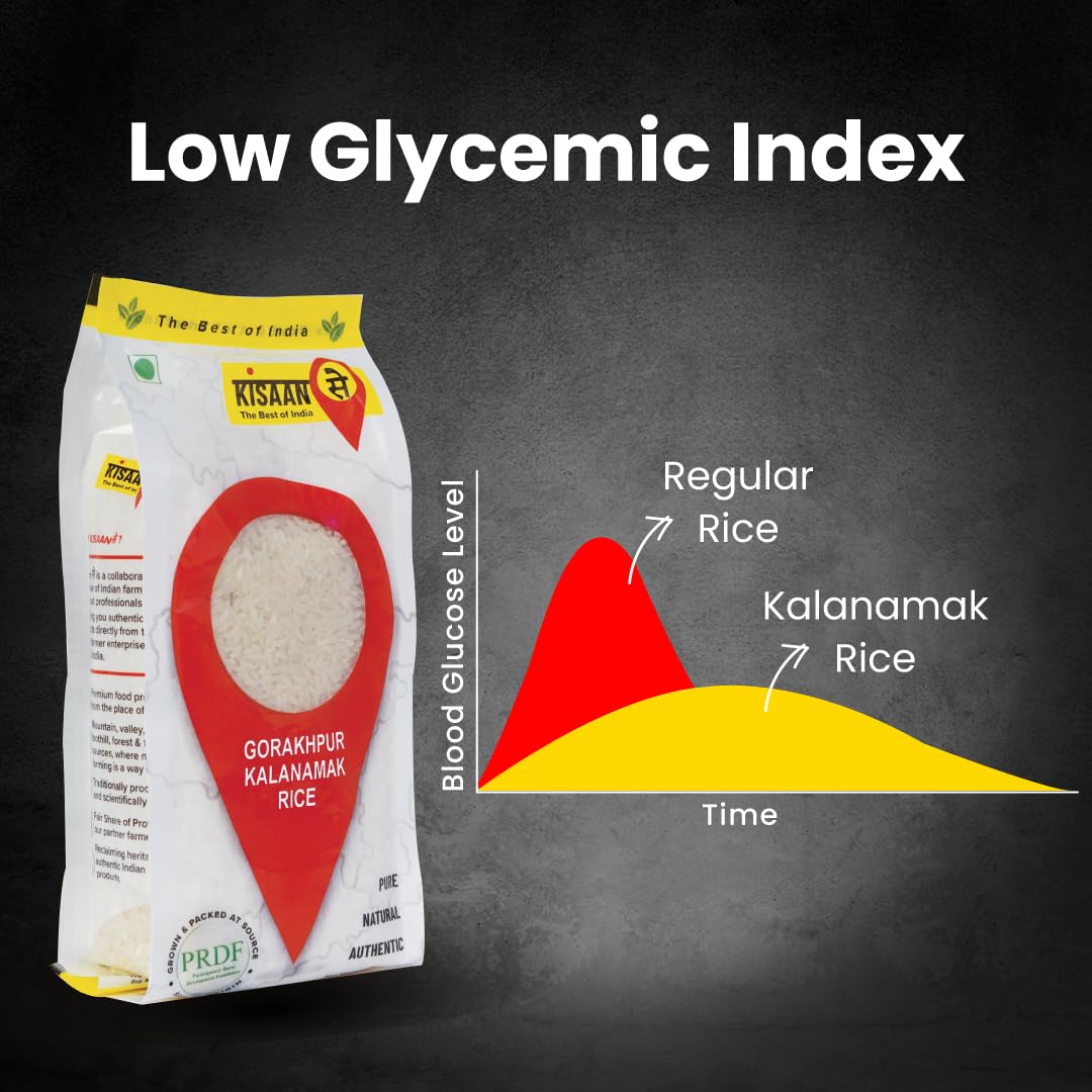 KisaanSay Gorakhpur Kalanamak rice 2KG | Diabetic Friendly | Aromatic Rice | Low GI | Unpolished | High in Iron & Protein | Low GI | Rich In Nutrients & Fiber | Buddha rice | Traditionally Milled | Blood Sugar Friendly