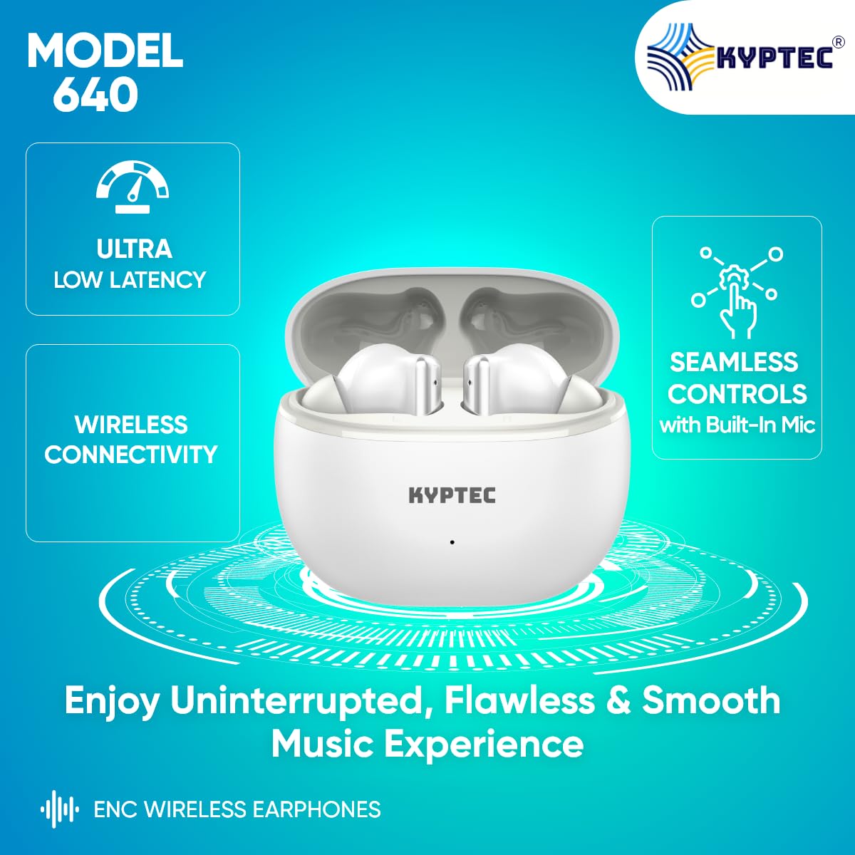 KYPTEC New Launch Model 640 ENC Bluetooth Wireless Earbuds – Earbuds with Mic, Deep Bass 13MM Drivers, 40H Playtime, Fast Charging, Low Latency, Sleek Lightweight Design, True Wireless Earphones