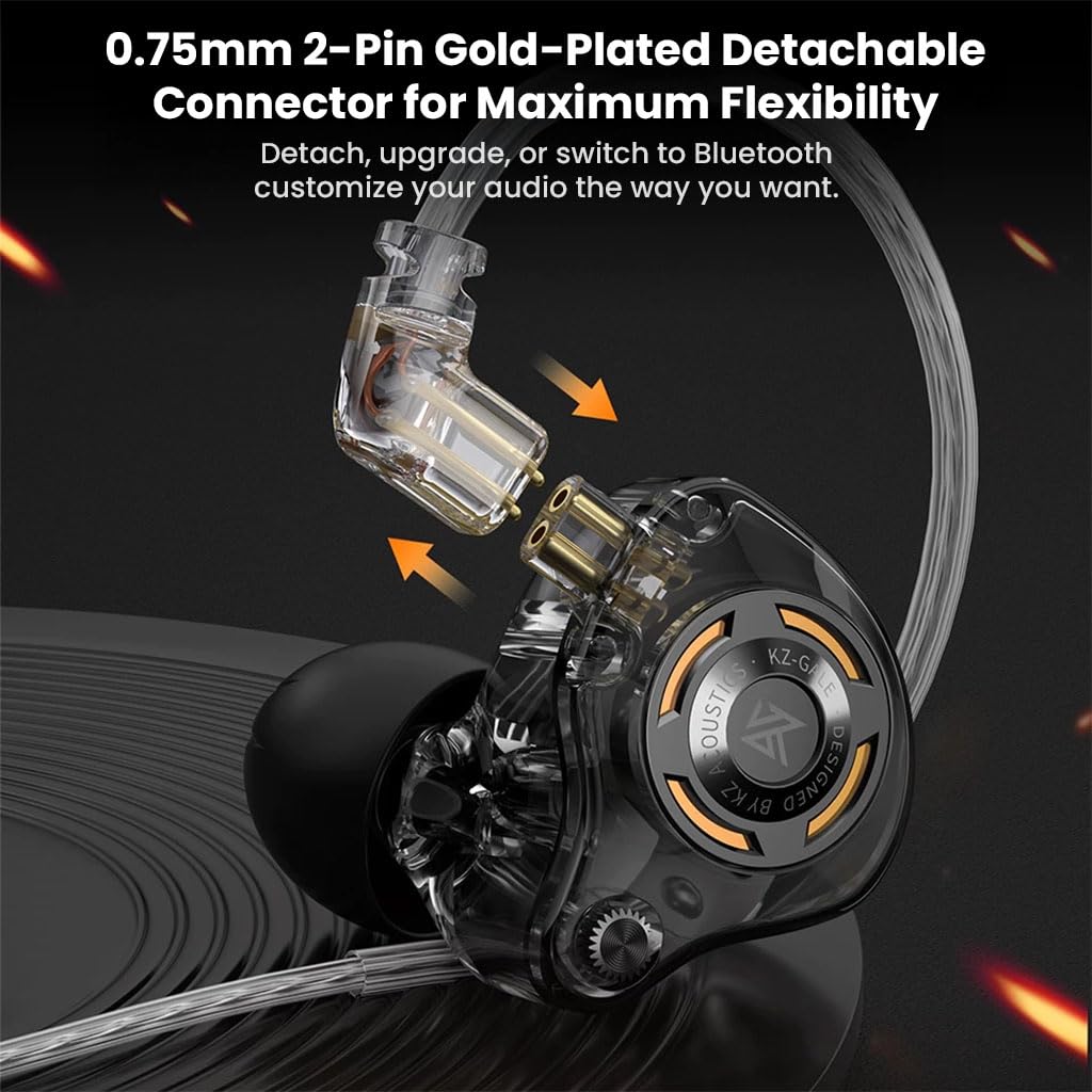 HIGH PURITY SILVER PLATED CABLE: KZ Gale comes equipped with a high-purity silver-plated cable that ensures clear, detailed audio by reducing signal loss. Paired with a 0.75mm 2-pin connector, it allows easy cable replacement or upgrades whether for durability, performance, or switching to wireless with a Bluetooth module.