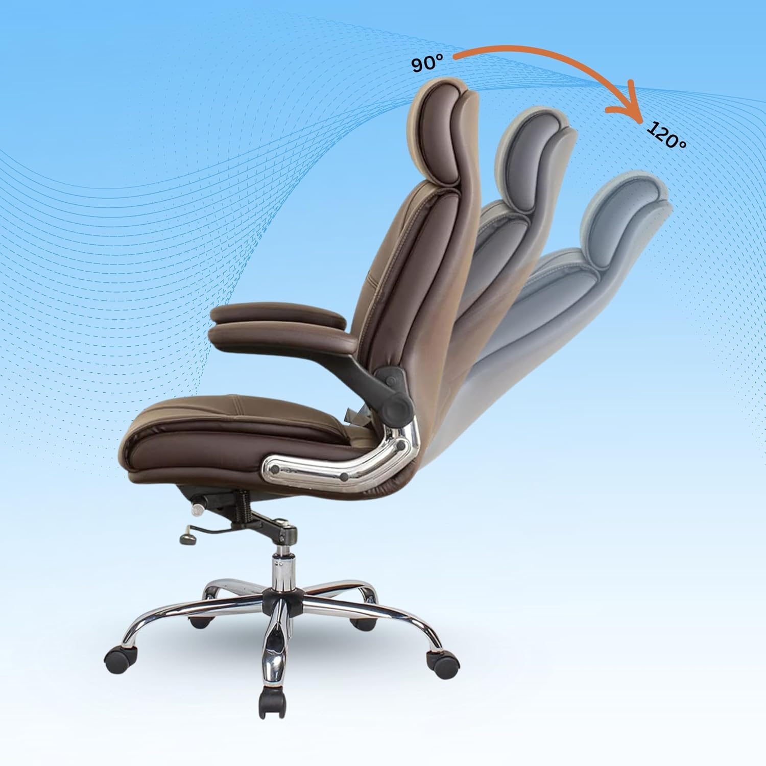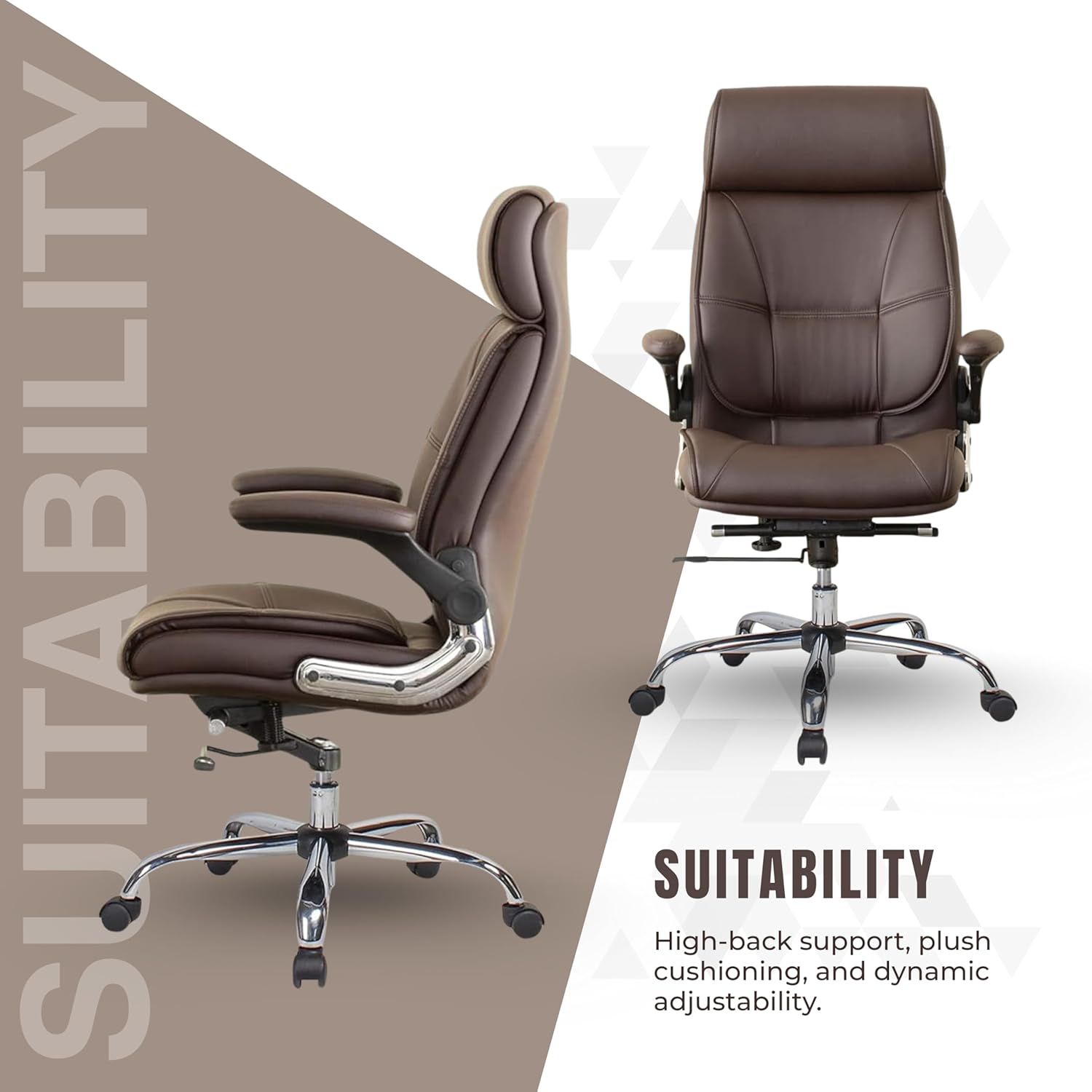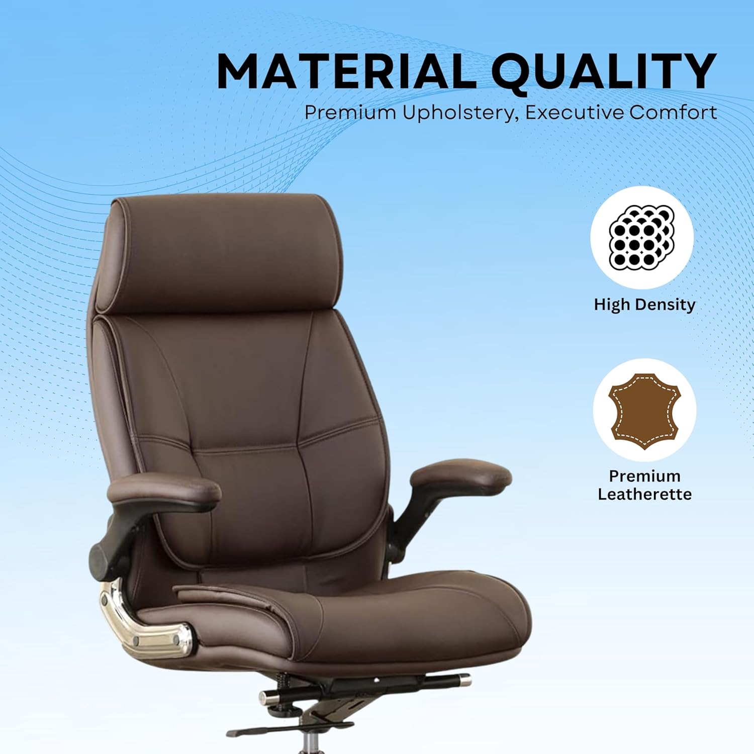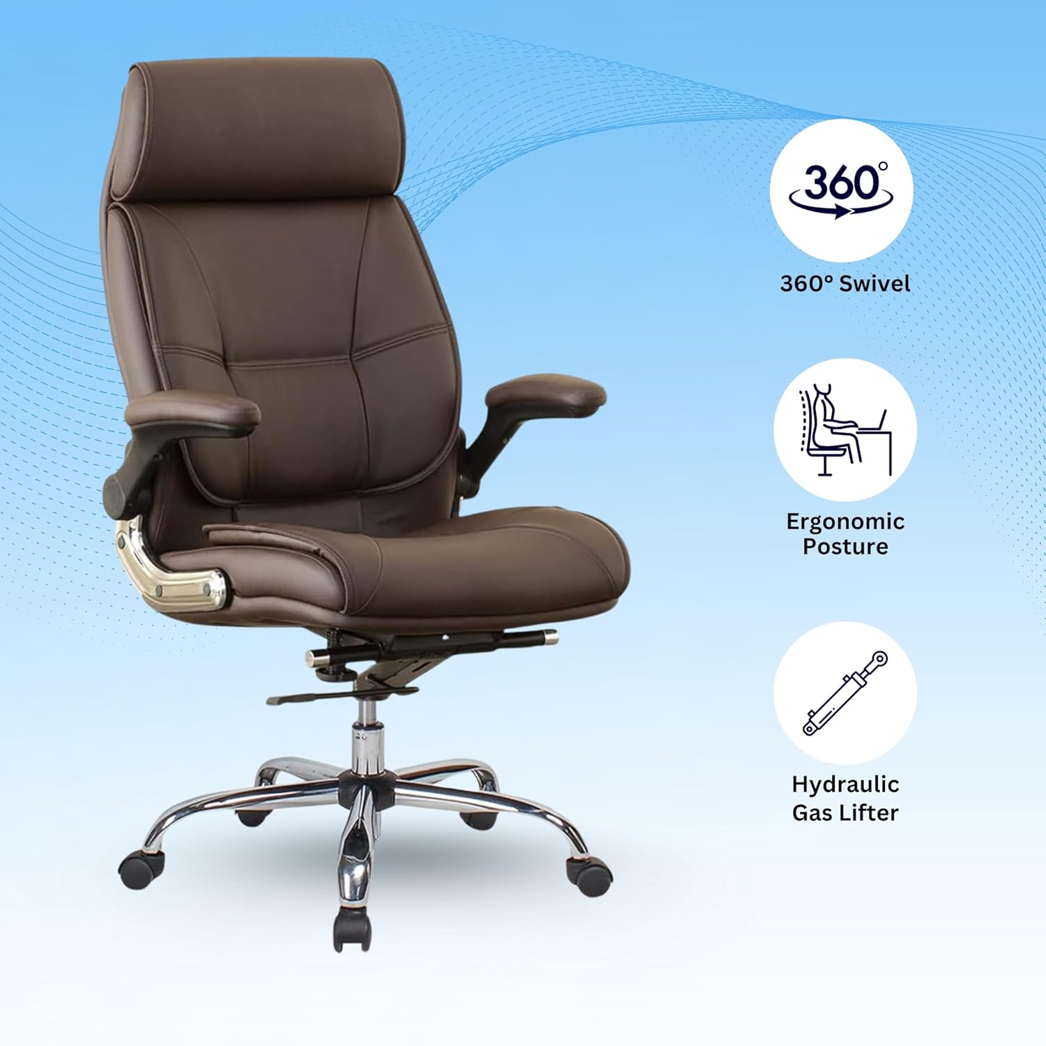 Lakdi The Furniture High Back Director Office Chair Ergonomic Leatherette Executive Chair with Adjustable Armrests, Comfortable Revolving Desk Chair for Office & Work from Home-111012160_Drakbrown