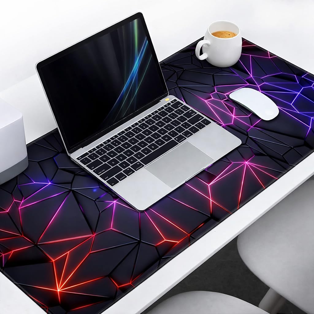 Upgrade Your Desk Setup with the Mokleva XXL Extended Gaming Mouse Pad, Designed for Gamers, Professionals, and Students Who Demand Space, Precision, Durability, and Style. Featuring a Bold 3d Geometric Neon Design, This Desk Mat Enhances Both Performance and Aesthetics for Work and Gaming Environments.