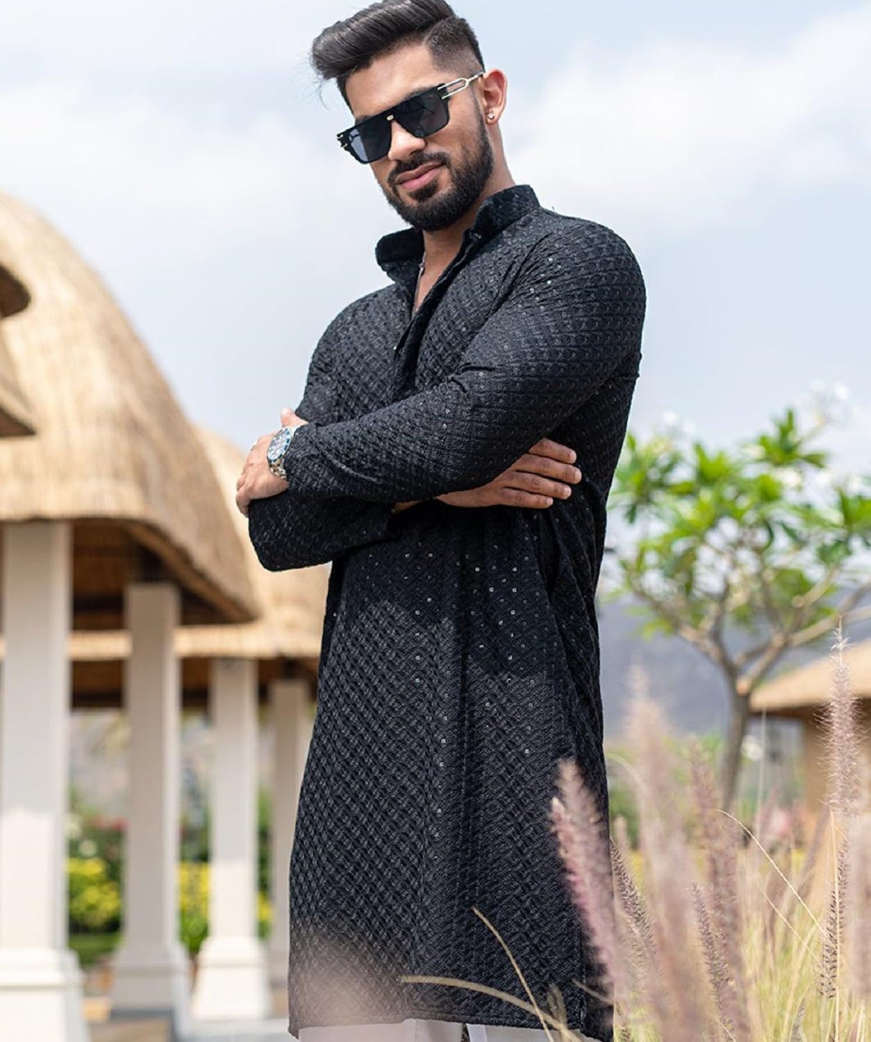 LAZZLY Men’s Cotton Embroidery Chikankari Design Mirror Work Straight for Men Only Kurta