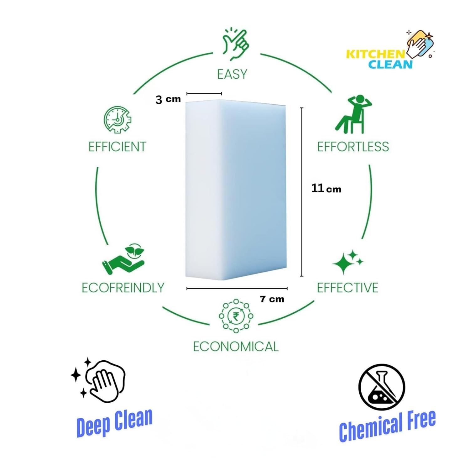 Package Contents: Pack of 2 Kitchen Clean Melamine Magic Eraser Sponges for all-around home cleaning. Perfectly sized at 11X7X3 cm for comfortable use. Perfect for kitchen, bathroom, and general home cleaning.