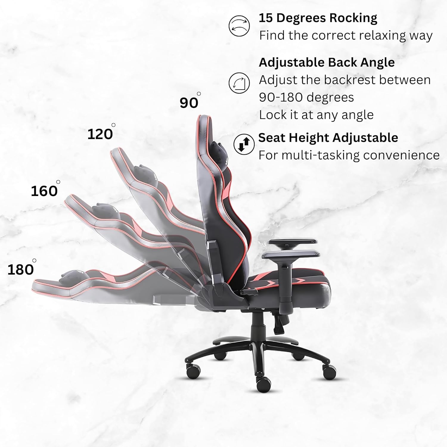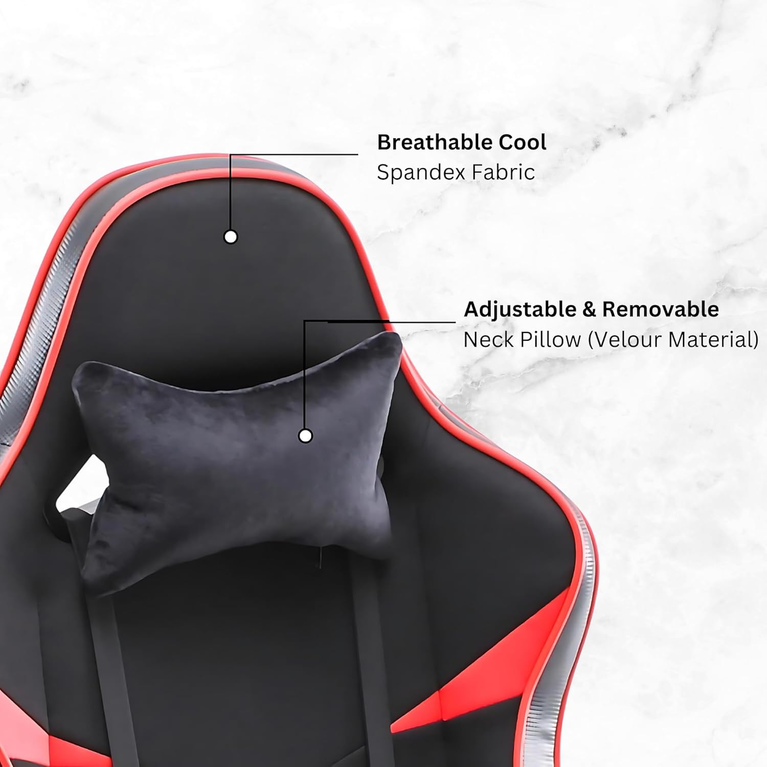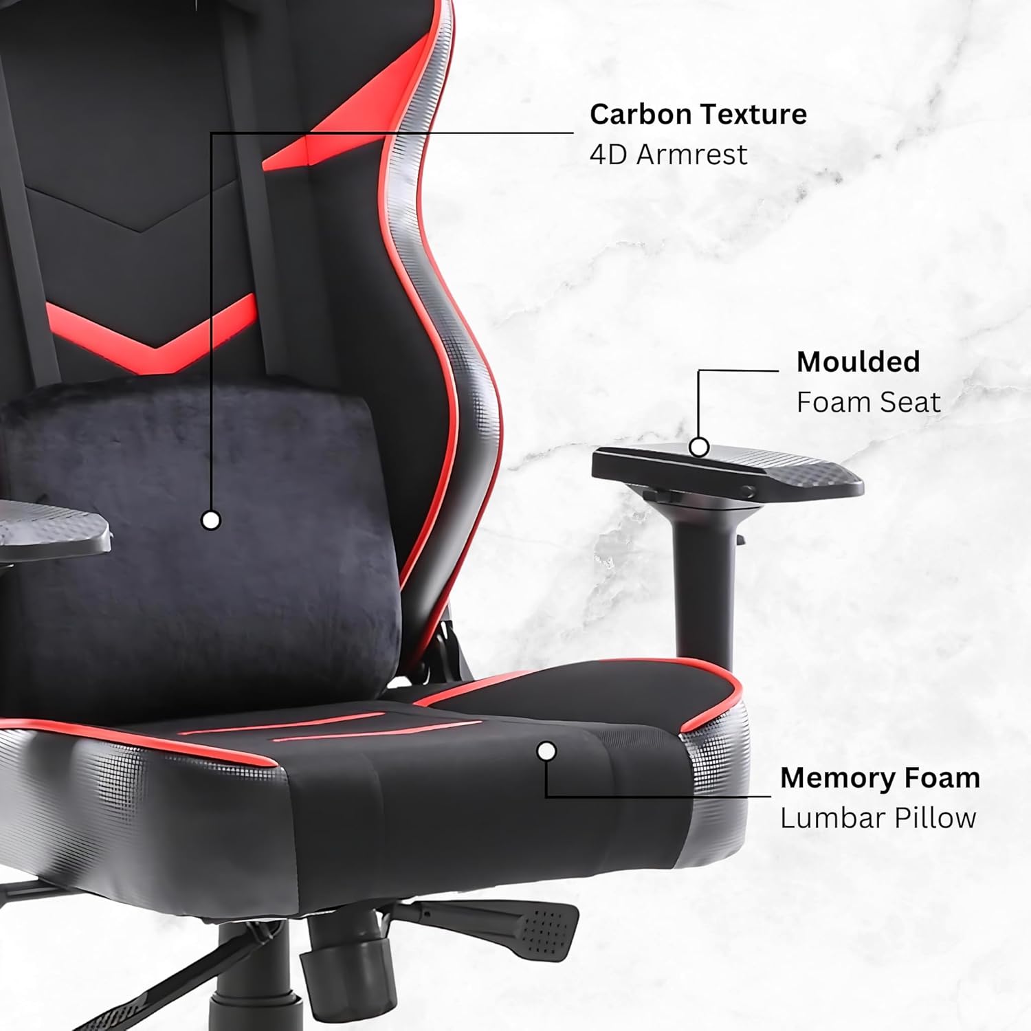 Maximo Multi-Functional Ergonomic Gaming Chair with Adjustable Armrests, Wear Resistant Faux Leather, Adjustable Neck & Lumbar Pillow (Red)