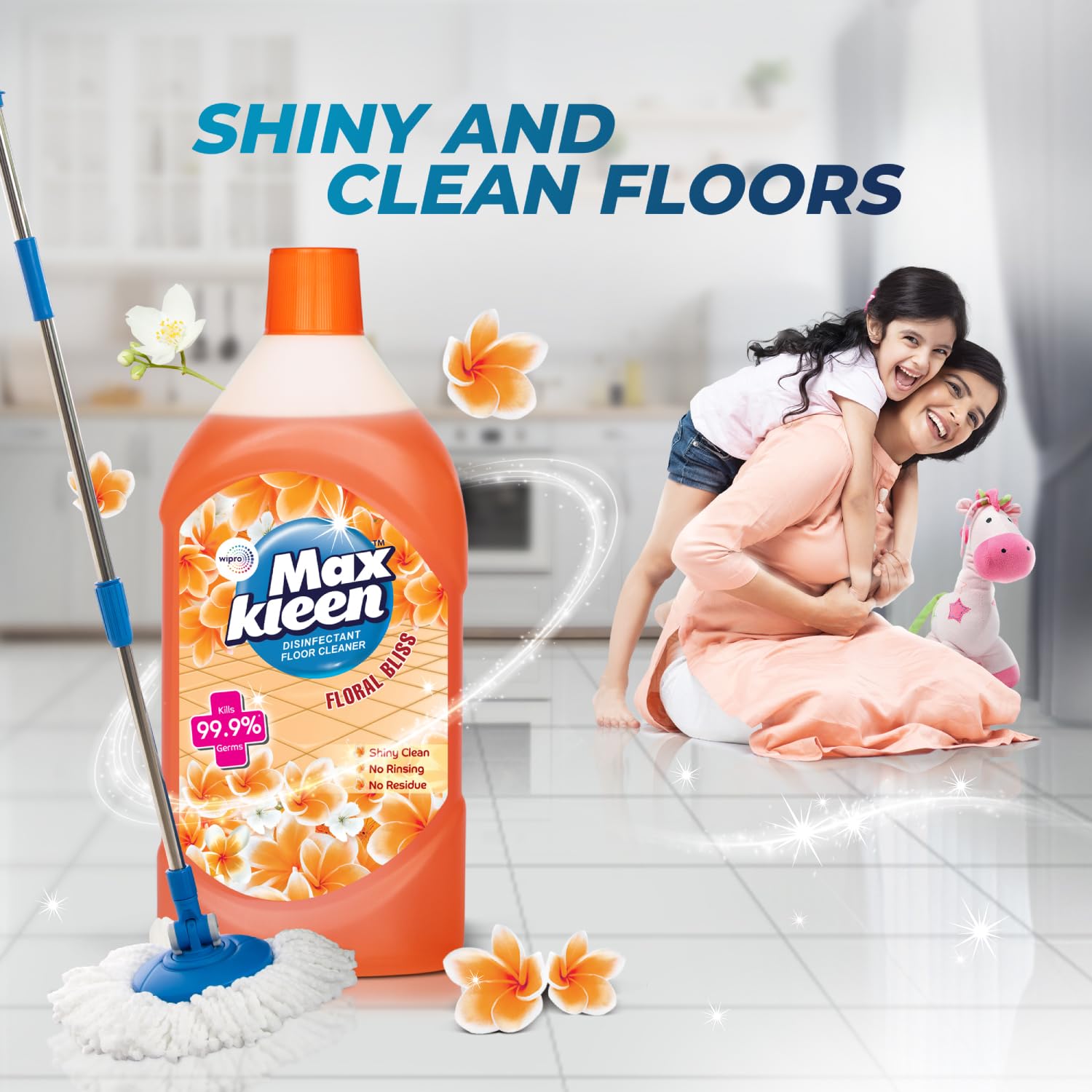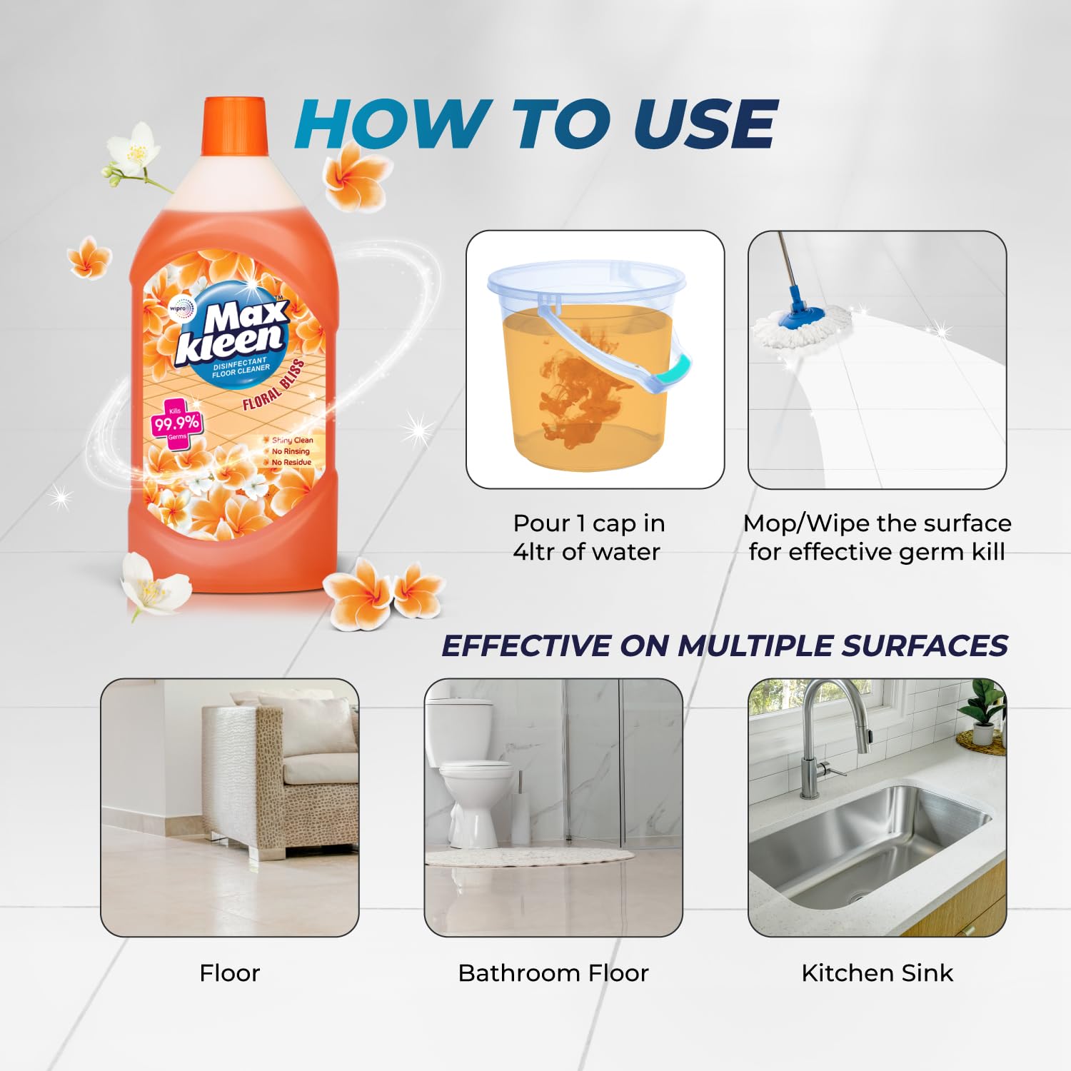 Maxkleen Wipro 1Litre+25% Extra – Floral Bliss Disinfectant Surface & Floor Cleaner Liquid, | Suitable For All Floor Cleaner Mops | Kills 99.9% Germs