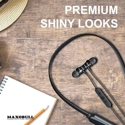 Maxobull Magnetic Wireless Earbuds Ergonomic Fit Bluetooth 5.0 in Ear Flexible Neckband with Sound, Water Resistance and Magnetic Control Earbuds, Sports Look, Sweat Proof Headset with Mic – Black