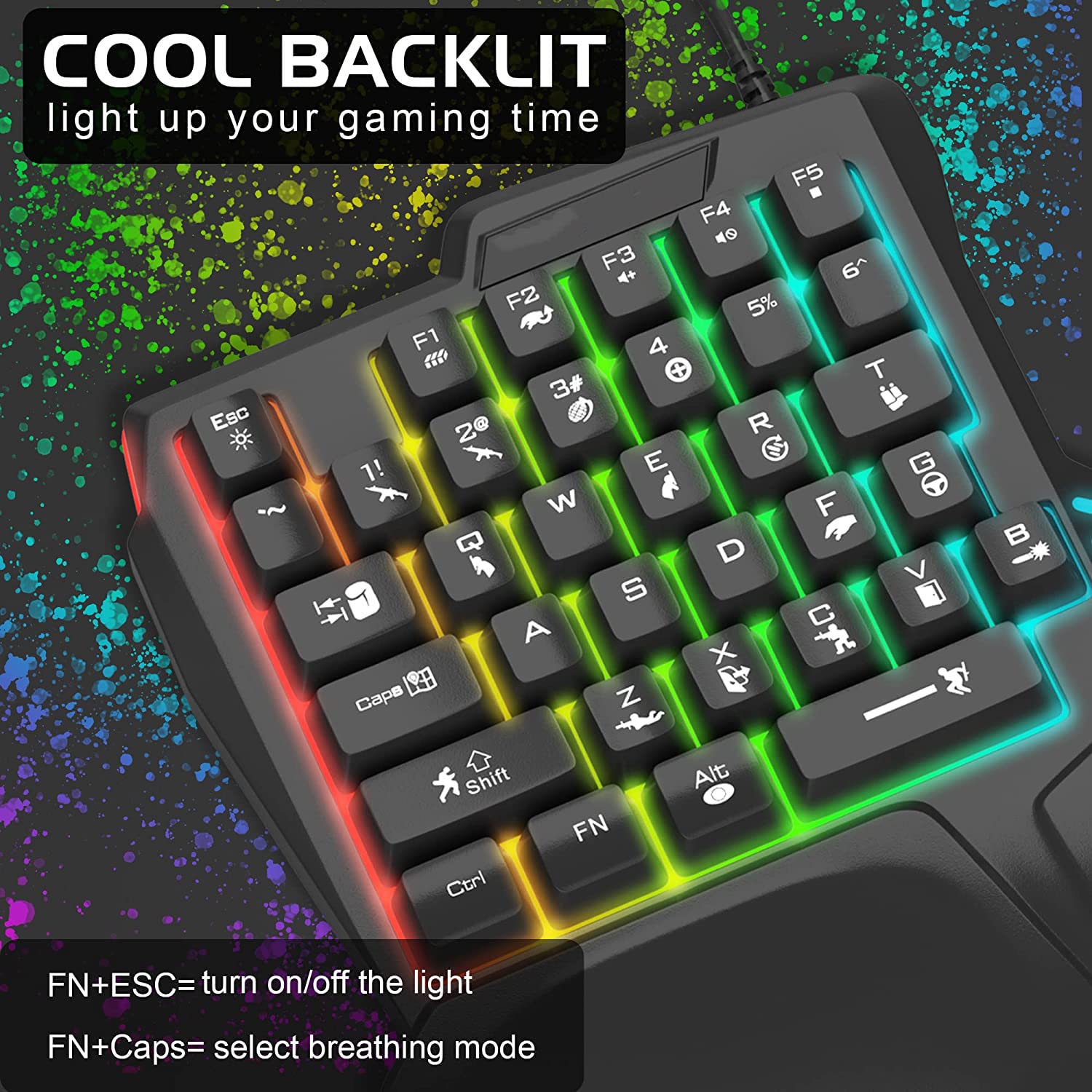 Microware G7 35 Keys One-handed Gaming Membrane keyboard Ergonomic One Hand Keypad Keyboard for Laptop Desktop PC Computer PUBG
