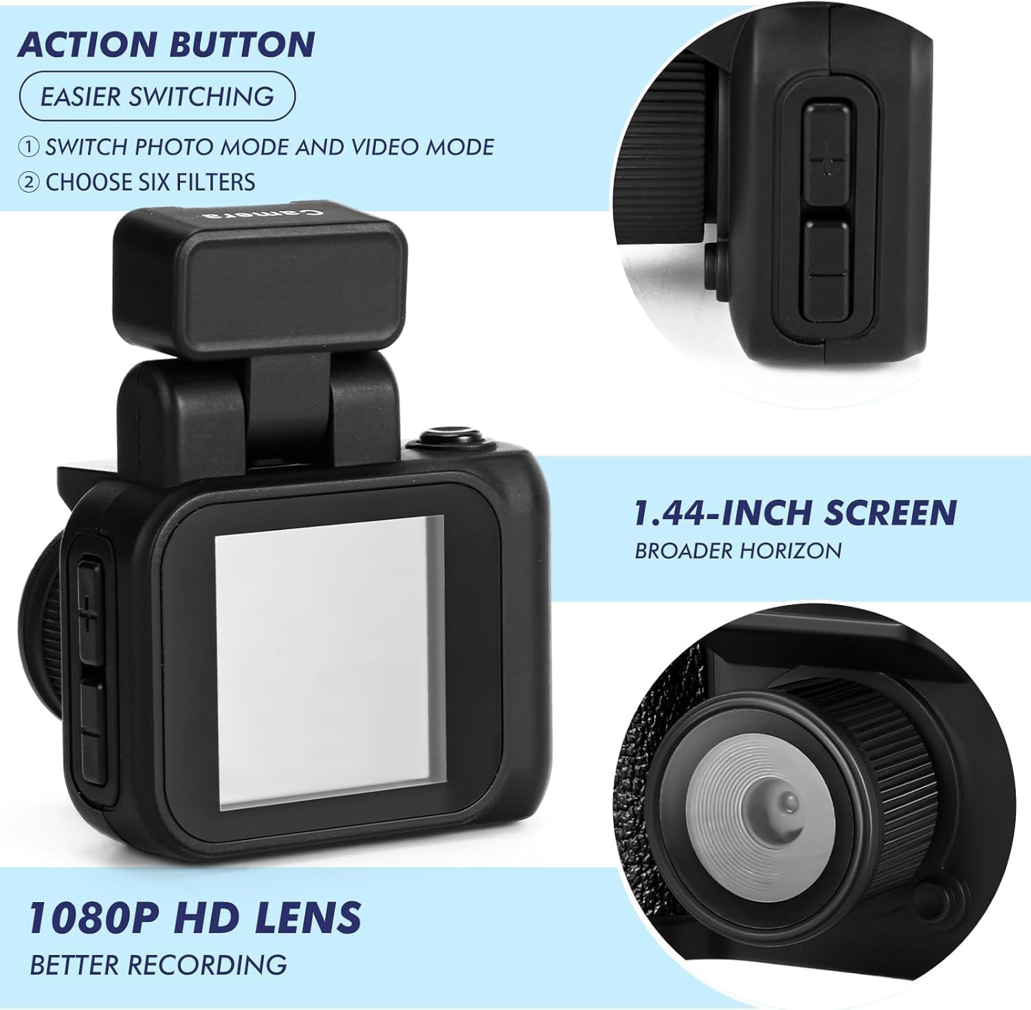 mini Camera Keychain Real for HD 1080p Nostalgic Retro Photos,Video vlogging, with 1.4 in LCD Screen | 32 gb sd Card | Card Reader | Portable Camera for Travel Recording (Black)