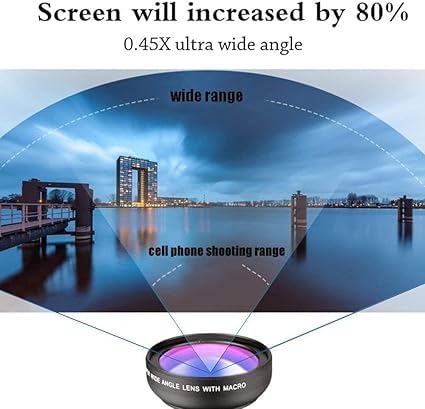 📸 0.45X Wide Angle Clip-On Camera Lens for Smartphones Capture more in every shot with this 0.45X Wide Angle Smartphone Camera Lens. Designed to instantly expand your phone camera’s field of view, this clip-on lens is perfect for landscapes, group photos, travel, vlogging, and everyday photography.