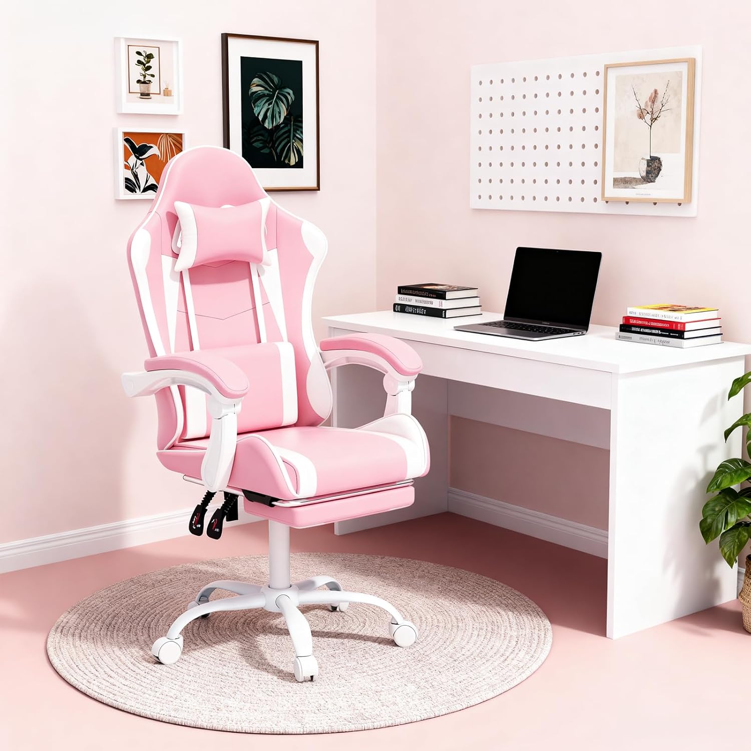 MoNiBloom Gaming Chair with Headrest & Lumbar Support Ergonomic Computer Racing Chair with Footrest, Adjustable Hight Leather Swivel Computer Chair for Adult Teen Office or Gaming