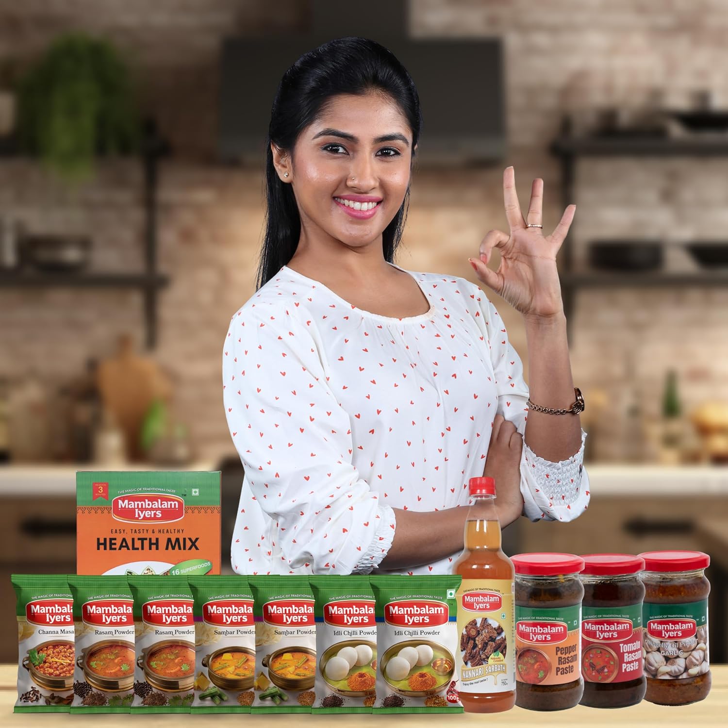 Sambar Powder (100 Gm) Rasam Powder (100 Gm) Idly Chilli Powder (100 Gm) Multi Millet Mix – Health Mix (200 Gm) Nannari Squash (700 Ml) Tomato Rasam Paste Glass Jar 30 Pcs Pack (300 Gm) Chana Masala (100 Gm) Garlic Pickle Glass Jar 30 Pcs Pack (300 Gm) Pepper Rasam Paste Glass Jar 30 Pcs Pack (300 Gm)