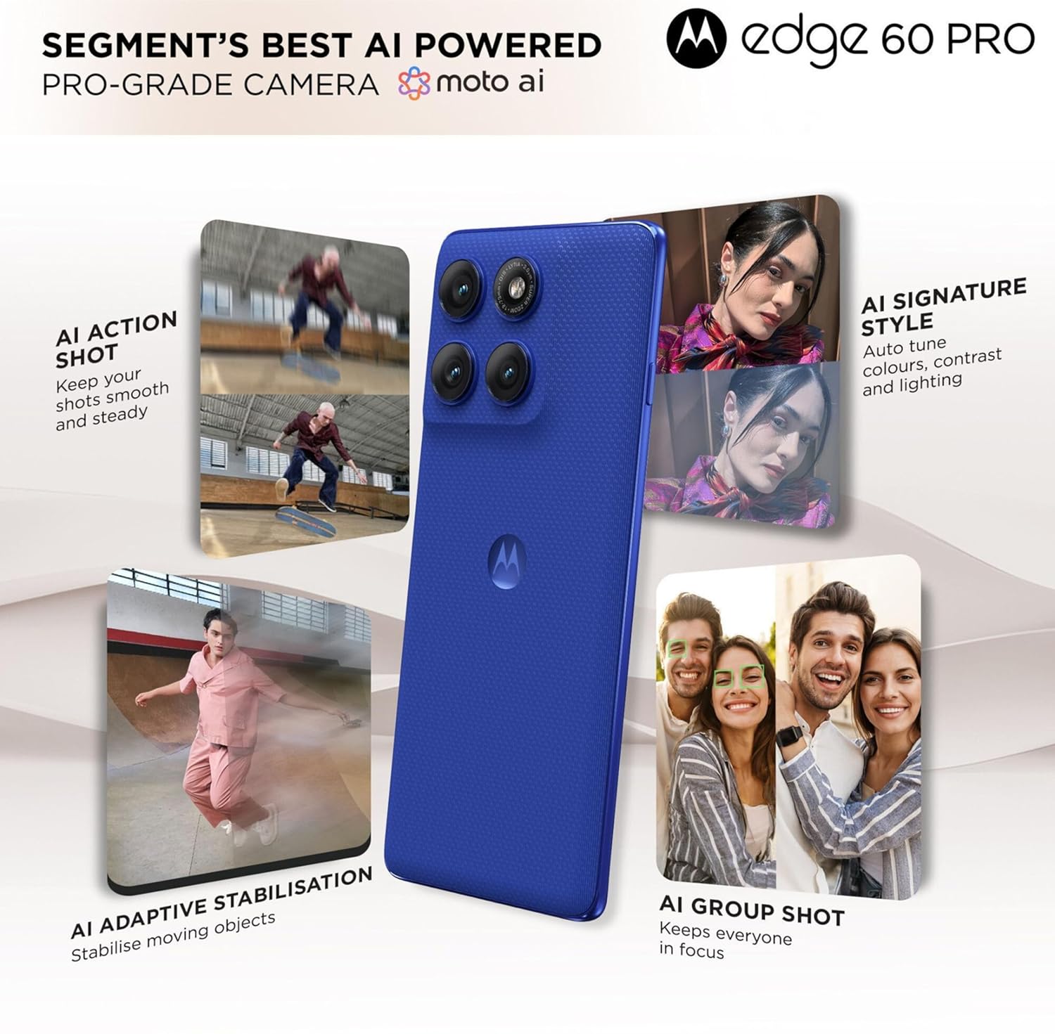Moto AI Camera, AI Action Shot, AI Group Shot, Signature Style, StabilisationMoto AI Camera, AI Action Shot, AI Group Shot, Signature Style, Stabilisation