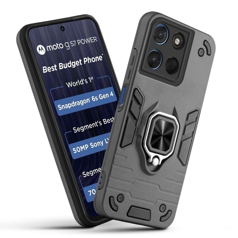 Upgrade your phone protection with the Mr. Case Dual Layer Shockproof Back Cover for Motorola G57 Power 5G, designed for durability, grip and everyday convenience. This protective case combines a tough outer shell with an impact absorbing inner structure to help safeguard your device from accidental drops and daily wear. The built in 360° rotating ring stand provides secure one hand grip and doubles as a convenient kickstand for watching movies, attending video calls or browsing content hands free. The reinforced frame and shock absorbing corners add extra protection where your phone needs it most. Raised camera edges help protect the lens from scratches and flat surface contact, while precise cutouts ensure easy access to all ports and buttons. If you are searching for a shockproof back cover, ring stand case, camera protection cover or durable Motorola G57 Power 5G mobile cover, this case offers the right balance of protection, grip and functionality.