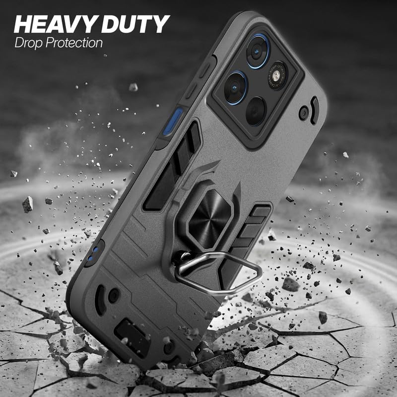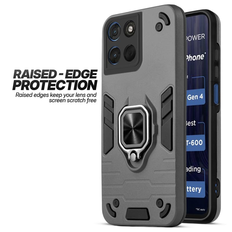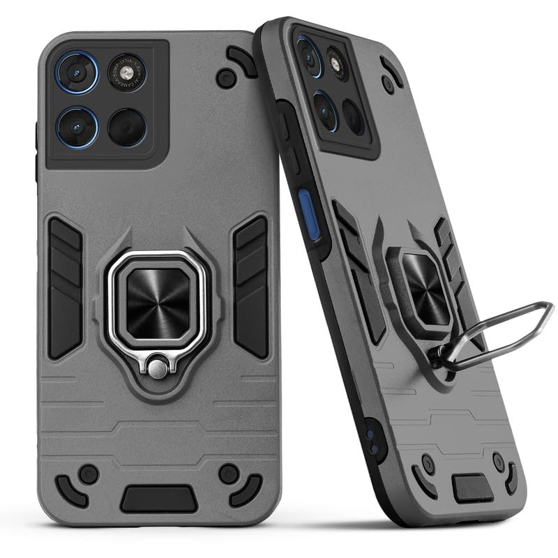 Mr. Case Back Cover for Motorola G57 Power 5G with 360° Rotating Ring Stand | Dual Layer Shockproof Protection | Tough Frame | Raised Camera Protection Case – Grey