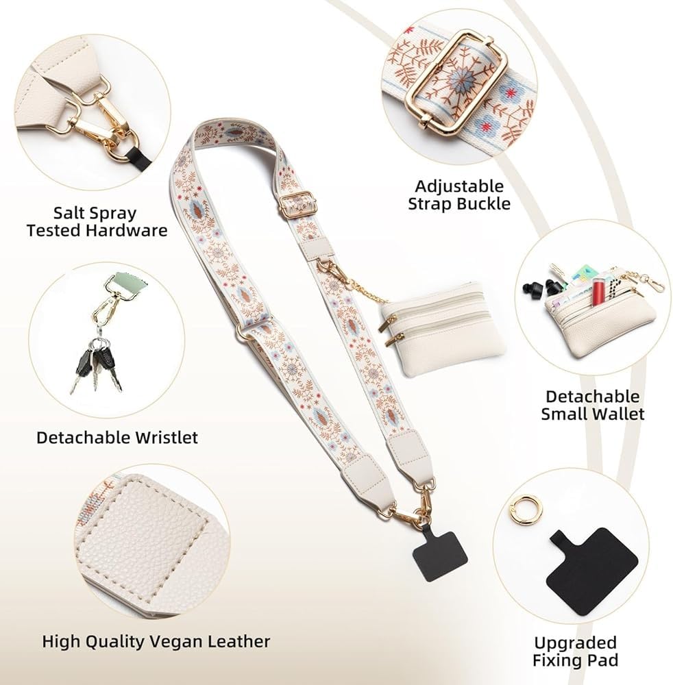 Multipurpose Phone Lanyard Strap with Card Holder Pouch, Adjustable Crossbody Neck Strap for mobile phone, Handbag Replacement Strap, Mobile Charm, Mobile lanyard, For Camera, Guitar and Purse